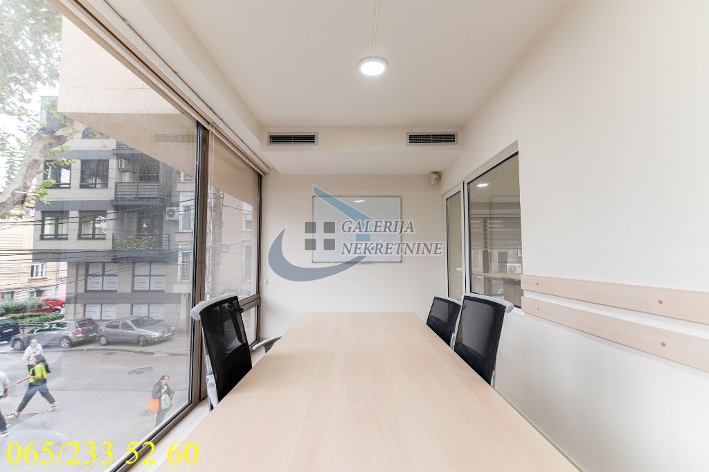 Prostor se sastoji od kraćeg ulaznog hodnika, blago izdvojenog prijemnog dela, veće centralne open space kancelarije, odvojene kancelarije, sobe za sastanke, kuhinjskog dela i toaleta. Ugaono pozicioniran i vrlo svetao. U prostoru je razvedena računarska i telefonska mreža.