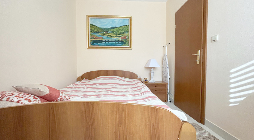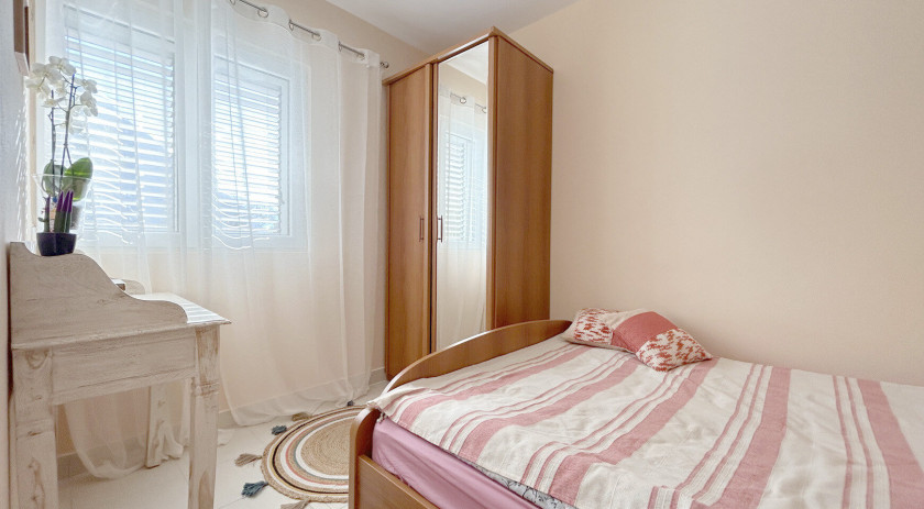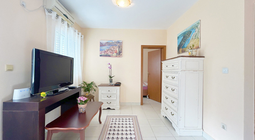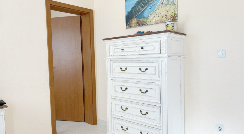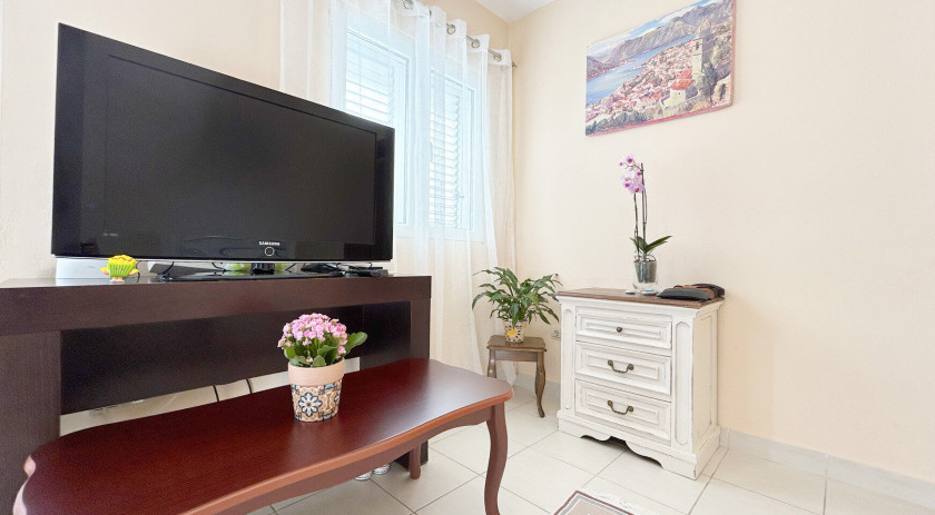 Площадь квартиры 31 м². Расположена в тихом и зелёном районе, всего в 3 минутах ходьбы от моря и пляжа.
