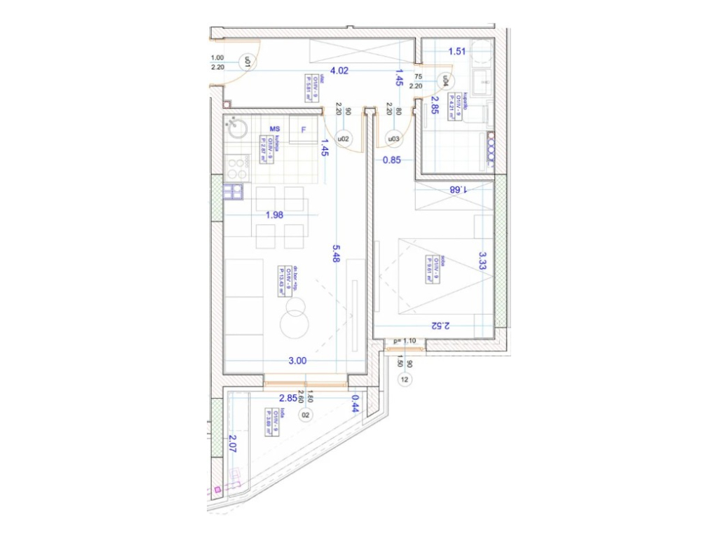 Dnevni boravak + trpezarija – 13,43 m²