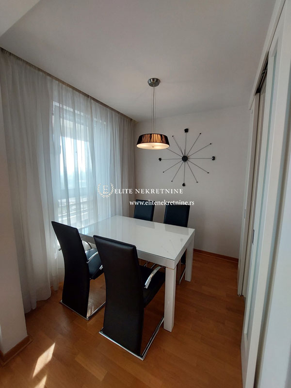 Opis: Dvosoban luksuzno namesten stan u Naselju Belville kod Delta City-a . Stan je apartmanski opremljen. Prostan i svetao dnevni boravak sa izlaskom na terasu, trpezarija, kuhinja, spavaca soba, kupatilo.