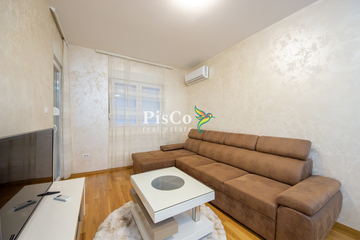 EnterijerStan površine 43m² moderno je namješten i odlično očuvan. Posjeduje funkcionalan raspored prostorija, prostran dnevni boravak sa kuhinjom i trpezarijom, spavaću sobu, kupatilo i terasu koja gleda direktno na bulevar. Opremljen je kvalitetnim namještajem i tehnikom, što pruža komfor i prijatan ambijent za stanovanje.