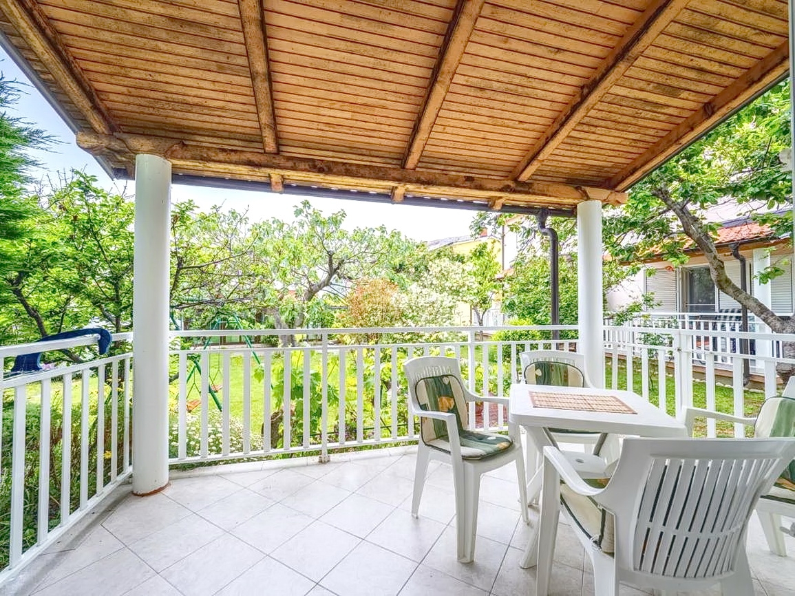 Vrlo dobar i kvalitetan objekt je satkan od ukupno 2 visinski korisne etaže. Kuća se sastoji od dvoetažnog apartmana koji je u naravi prenamijenjen u dva jednosobna apartmana povezana unutarnjim stepeništem. Kuća zauzima prostor ukupne površine 98 m2. Unutar navedene površine su u prizemlju ulazni hodnik, dnevni boravak i kuhinja s blagovaonicom, spavaća soba, kupaonica i terasa. Na katu navedene nekretnine također je smješten jednosoban apartman koji se sastoji od ulaznog hodnika, dnevnog boravaka, kuhinje s blagovaonicom, 2 kupaonice i lođe. Interijer nekretnine je vrlo dobro održavan te kompletno opremljen svim potrebnim tehničkim uređajima i kvalitetnim namještajem.