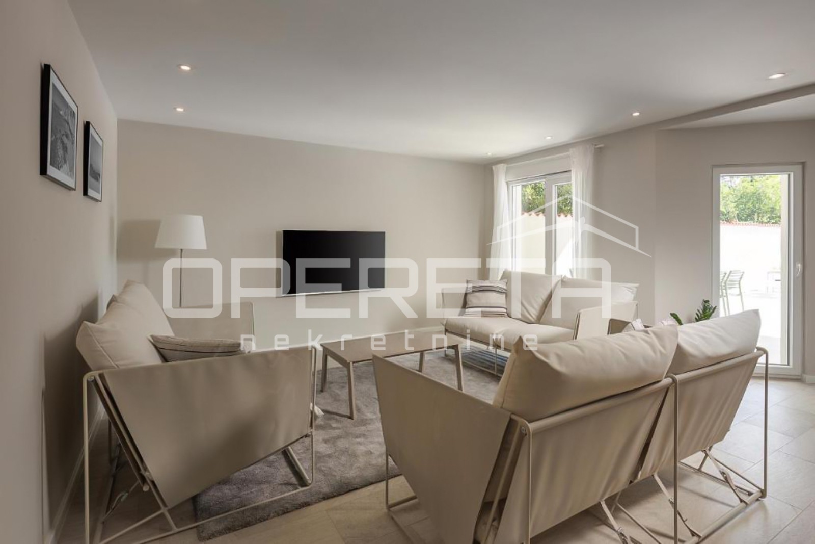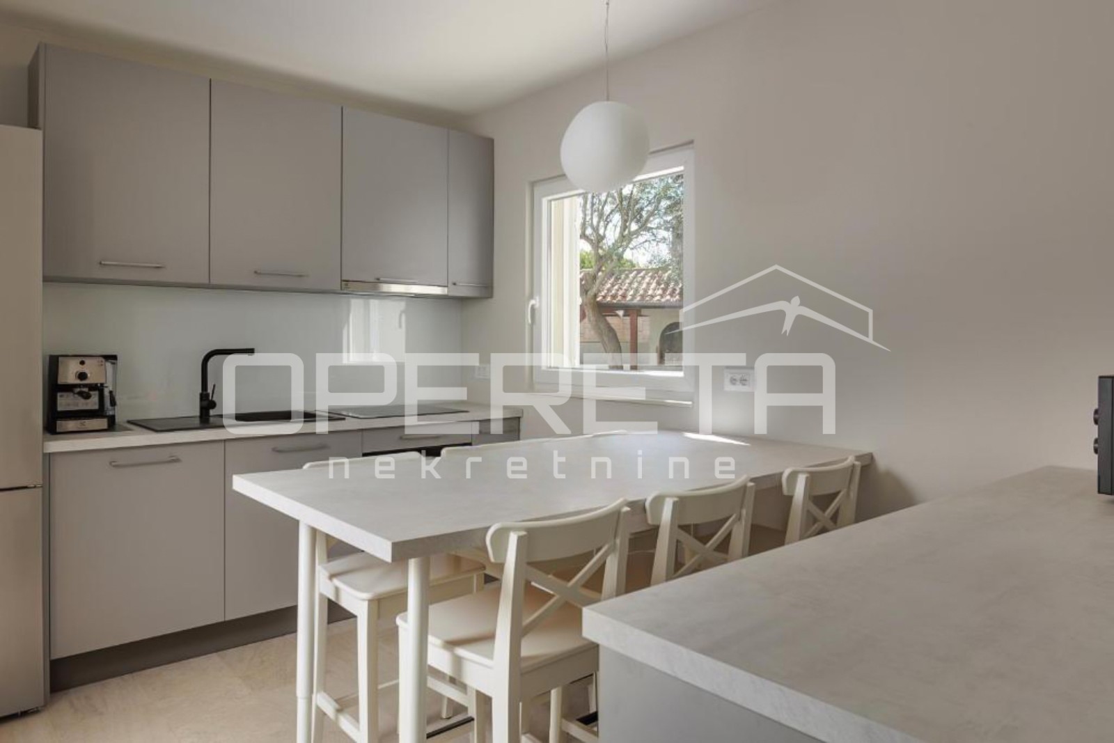 Opis: ISTRA, BRTONIGLA - Elegantna kuća s grijanim bazenomOva elegantna vila prostire se na 165 m² raspoređene na dvije etaže. U prizemlju vas dočekuje prostrani dnevni boravak s moderno opremljenom kuhinjom i blagovaonicom. Tu su i jedna spavaća soba, kupaonica, dodatni WC i ostava. Iz dnevnog boravka se izlazi na natkrivenu terasu koja vodi do ljetne kuhinje s kaminom, grijanog bazena s protustrujnim plivanjem i sunčališta. Na katu su smještene tri spavaće sobe. Master spavaća soba ima vlastitu kupaonicu i izlaz na veliku terasu s pogledom. Preostale dvije spavaće sobe dijele kupaonicu i imaju izlaz na svoje privatne balkone. Kuća je opremljena modernim klima-uređajima, izgrađena je od visokokvalitetnih materijala i uređena u modernom stilu. Ova nekretnina je pravo blago i nudi brojne mogućnosti, te je idealna za život iz snova ili kao investicija. Nemojte propustiti priliku i zakažite svoj obilazak već danas.
