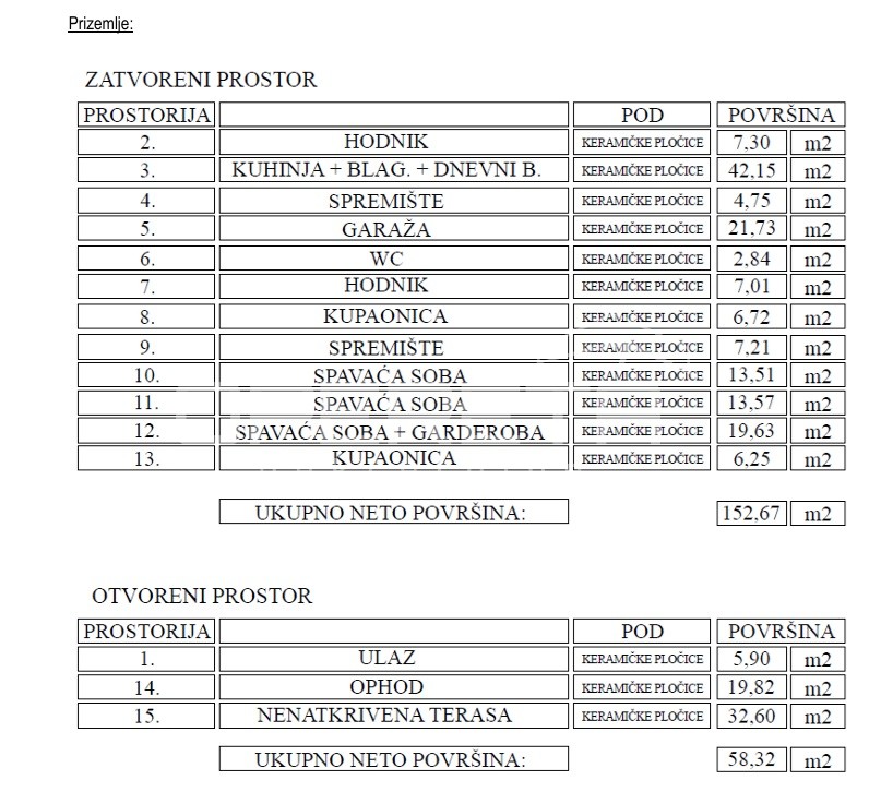 Opis: PRODAJA, KUĆA-NOVOGRADNJA, OROSLAVJE, MOKRICE, NKP 150 m2 ( 195 m2 bruto)Kvalitetna i moderna prizemnica u roh-bau fazi izgradnje ( novogradnja 2025. g.) na mirnoj lokaciji, u blizini Oroslavja i Zaboka.Orjentirana na sve 4 strane svijeta, funkcionalnog tlocrta i rasporeda, sastoji se od "open space" dnevnog boravka / blagovaonice / kuhinje s izlazom na prostranu terasu s pogledom na prirodu i zelenilo, "master" spavaće sobe s kupaonicom i "walk in" ormarom, dvije spavaće/radne sobe, dodatne kupaonice s wc-om, zasebnog wc-a, 2 spremišta, hodnika i garaže. Ciljani energetski razred A+, uz korištenje vrhunskih materijala, parket i kvalitetna keramika s podnim grijanjem na dizalice toplice, pvs stolarija, klime. Garažno parkirno mjesto + parking u dvorištu za 3 automobila. Kuća se prodaje po navedenoj cijeni u roh-bau fazi izgradnje, a moguća je i izvedba do faze "ključ u ruke" prema dogovoru.Izvrsna makro-lokacija: svega nekoliko minuta vožnje do centra Oroslavja i Zaboka i svih bitnih sadržaja te 25 min do Zagreba. 500 m od kuće novi gradski vrtić....