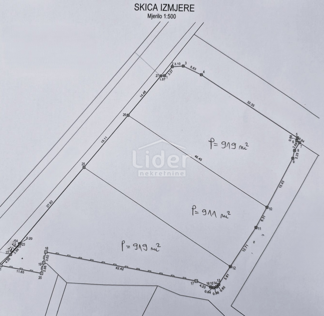 Parcelacija na parcele 911, 919 i 919m2 u tijeku...