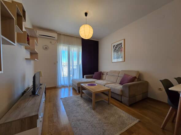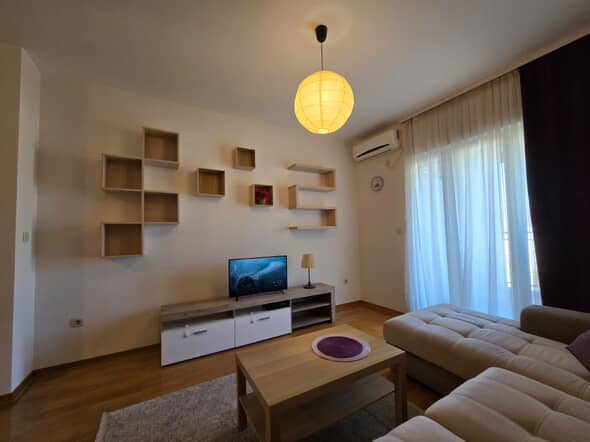 Opis: Iznajmljuje se kompletno namješten jednosoban stan površine 46m2 na vrhunskoj lokaciji u Bloku 6. Stan se nalazi na osmom spratu (od deset) zgrade Zetagradnja, a ova zgrada posjeduje dva lifta. Struktura stana: ulazni hodnik, dnevni boravak, kuhinja i trpezarija, kupatilo i terasa. Terasa je potpuno zastakljena i može služiti kao vešeraj. Stan je orijentisan sjeverno, ima dosta svjetlosti tokom čitavog dana. U prizemlju ove zgrade nalazi se sve što je potrebno za svakodnevn život: marketi, kafići, apoteke, restorani i sl. U neposrednoj blizini su OŠ i vrtić. STan je sloboda za useljenje od prvog decembra.