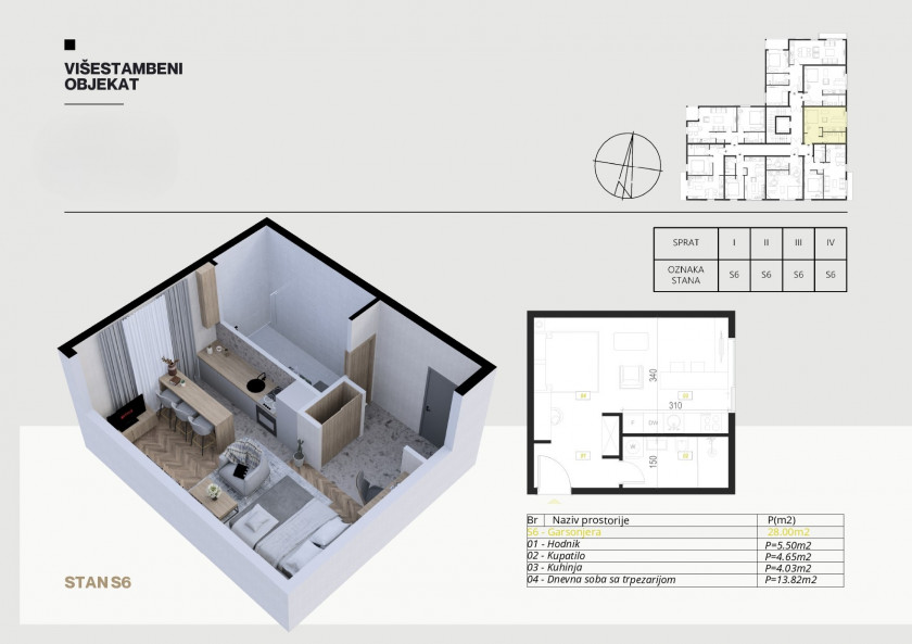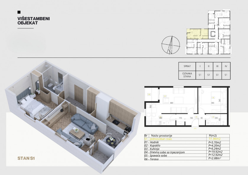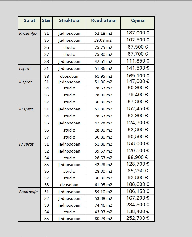 U ponudi su različite strukture stanova – od kompaktnih studio apartmana do dvosobnih jedinica, površine od 26 m² do 80 m².