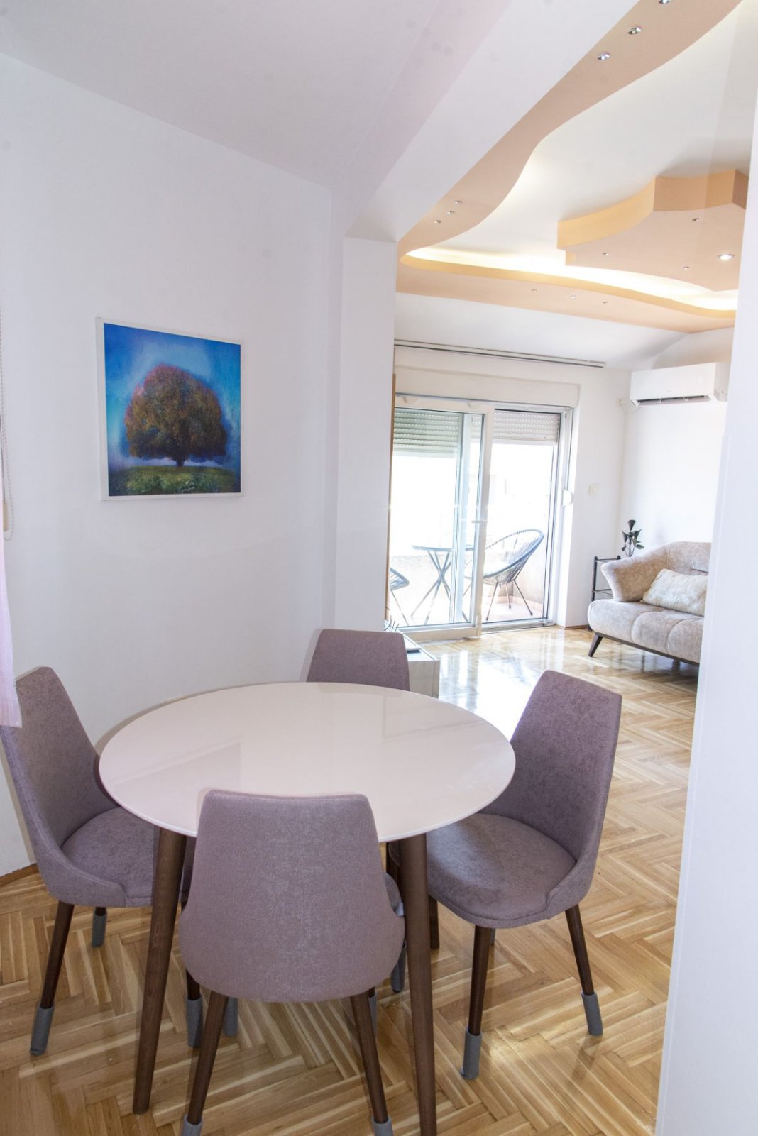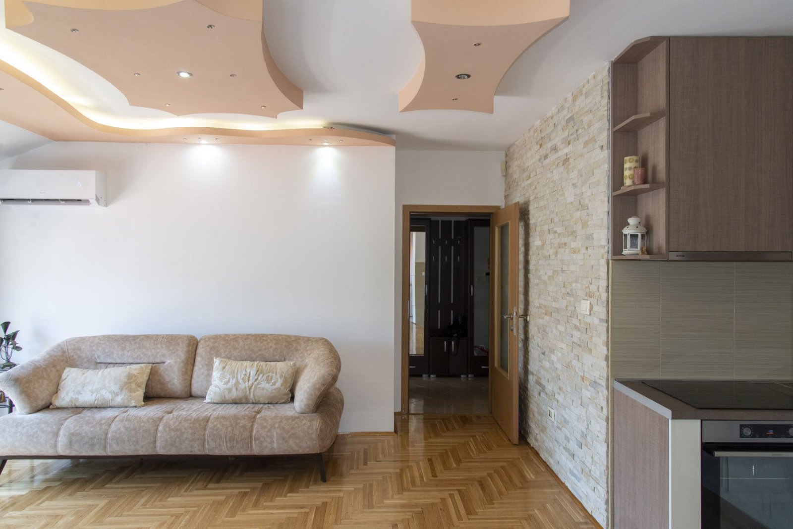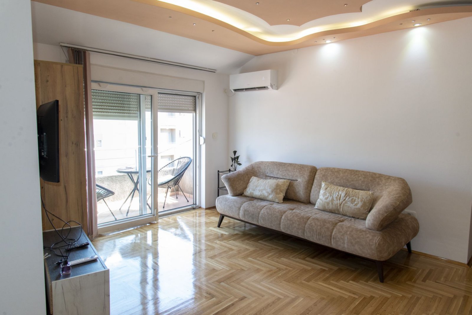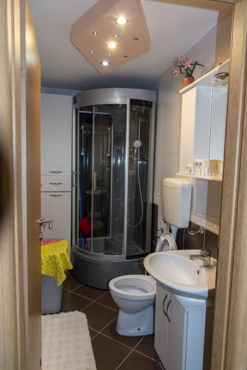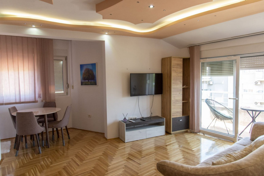 Stan je kompletno, veoma lijepo namješten, osunčan i osvijetljen.