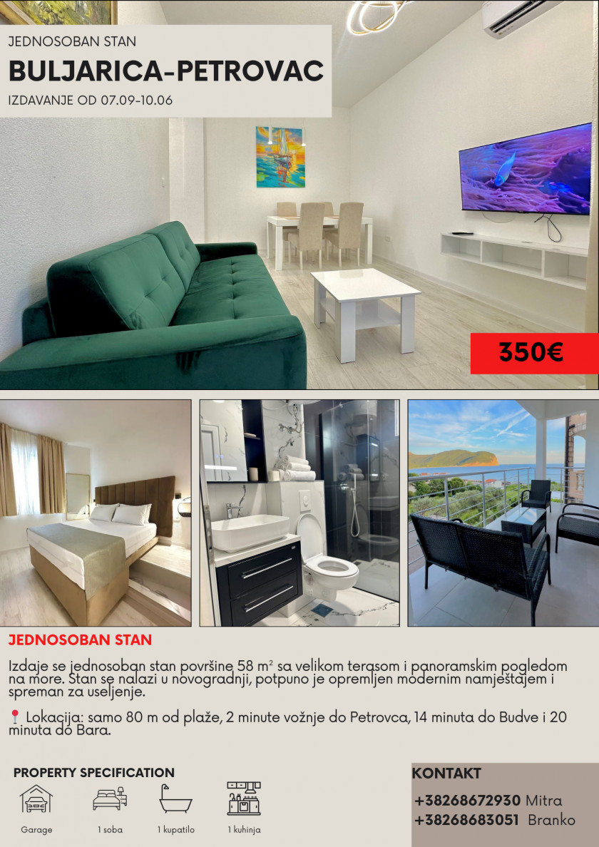 Opis: IZDAJEM LUKSUZAN STAN SA PANORAMSKIM POGLEDOM NA MORE – PETROVAC