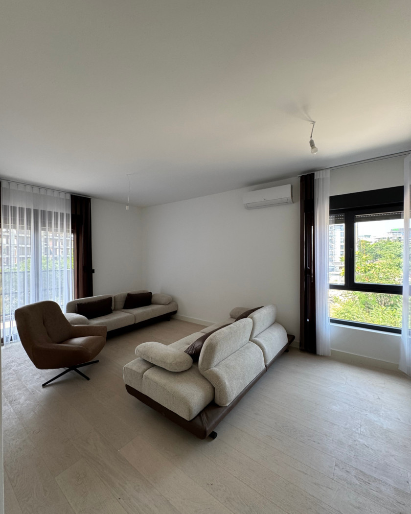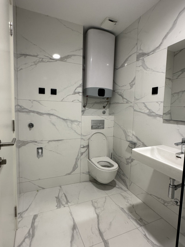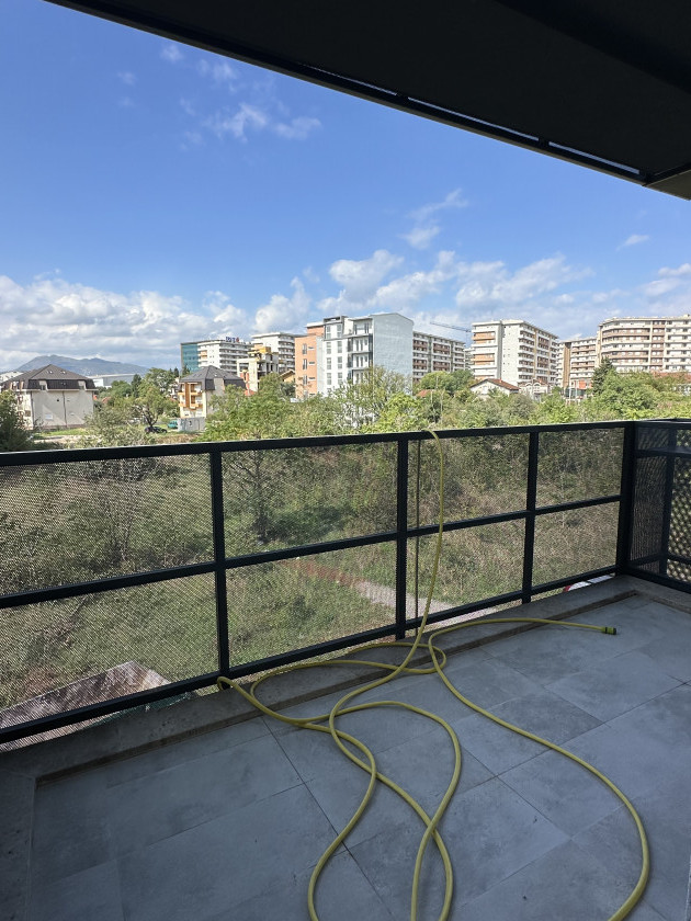 Opis: Iznajmljuje se jednosoban potpuno nov i neuseljavan stan površine 53m2, iza Central Pointa. Stan je na prvom spratu nove luksuznije stambene zgrade koja posjeduje lift. Struktura stana: ulazni hodnik, dnevni boravak, kuhinja, spavaća soba, kupatilo i terasa. Terasa gleda ka Central Pointu i dvorišnoj strani zgrade pa garantuje mir tokom čitavog dana. Stan je jako prozračan, sa prostranim prostorijama i namjšeten je kompletno. Nije useljavan, pa su sve stvari u njemu potpuno nove. Lokacija je idelna za život, u blizini su tržni centri kao i mnogi drugi poslovni objekti, KCCG, brojni fakulteti i slično. Iznajmljuje se na duži vrremenski period i pri useljenju daju se dvije kirije i depozit u vrijednosti istih.