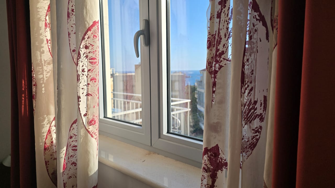 Stan je svijetao, ugodan i suh. Panoramski prozori od poda do stropa. Prodaje se potpuno namješten.