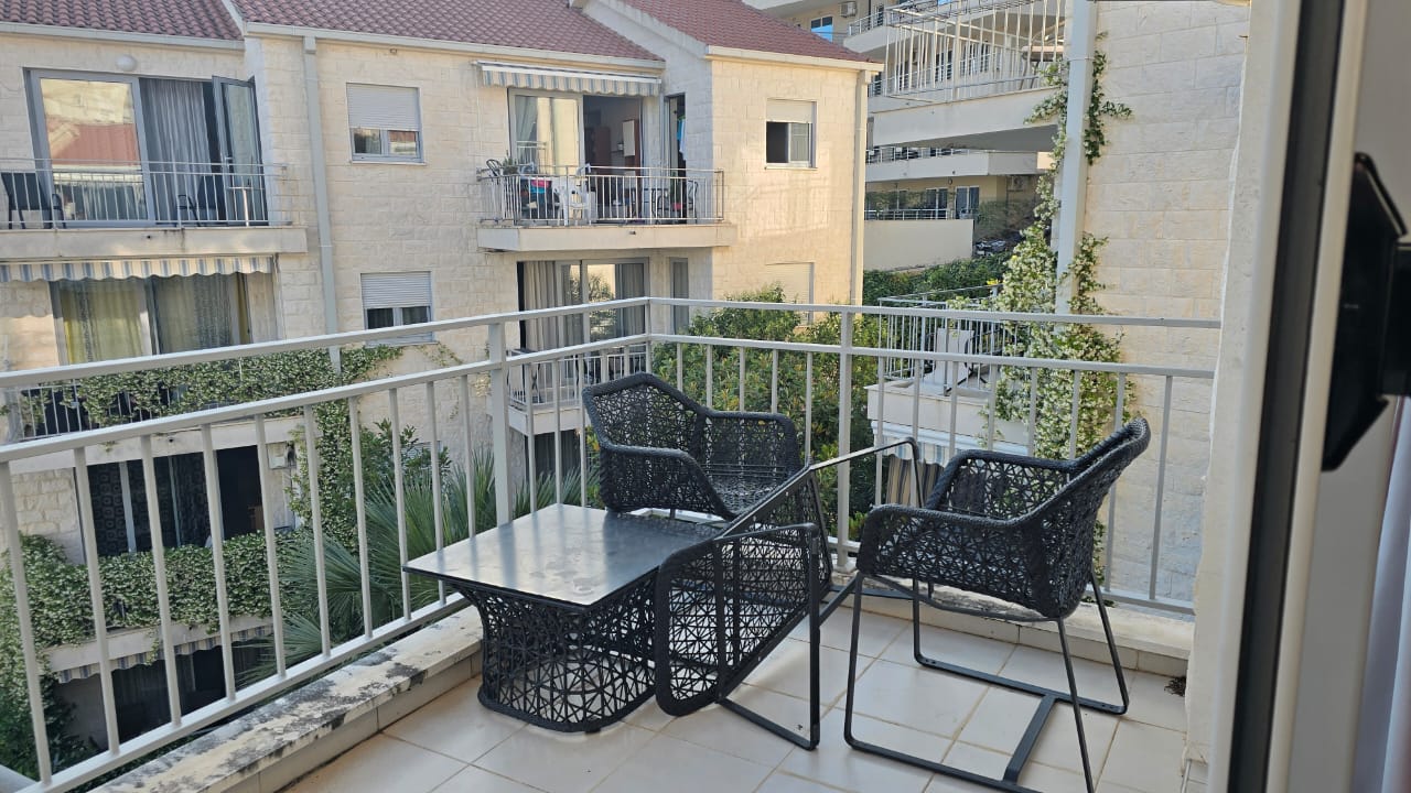 Opis: Jednosoban 50 m2 s pogledom na more u Petrovcu – kompleks s bazenom