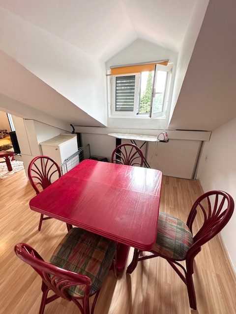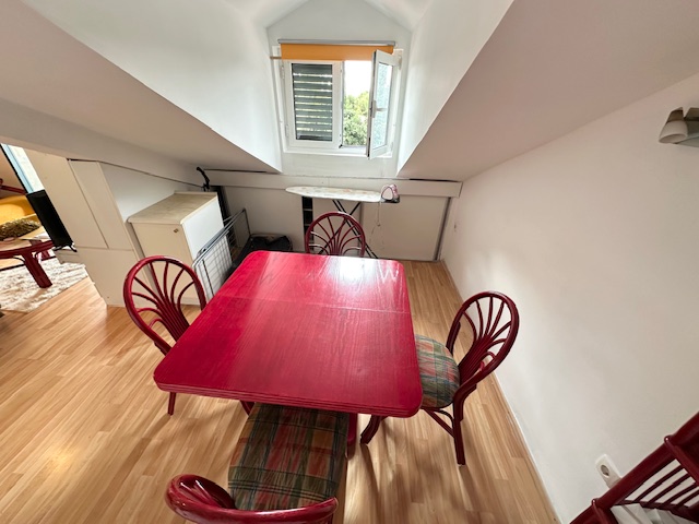 Stan se nalazi na potkrovlju stambene zgrade starije gradnje. Prodaje se u namjesten.