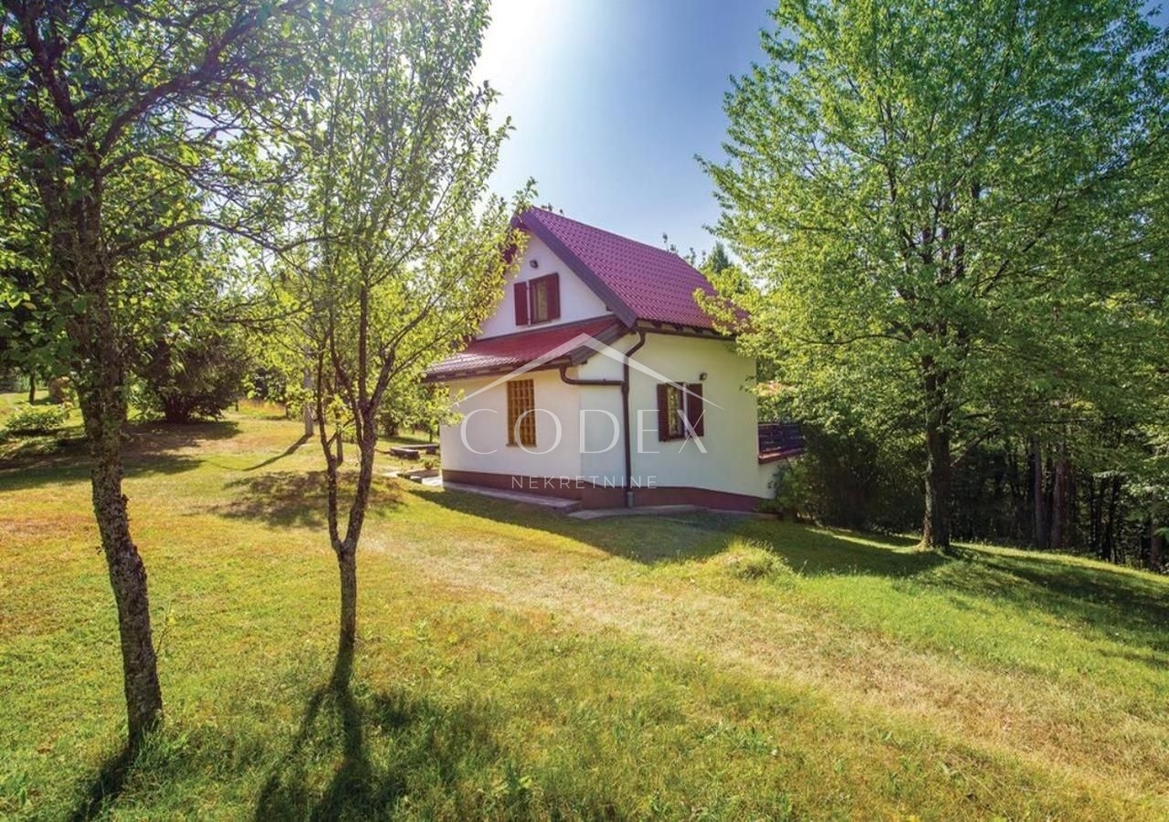 Opis: Na mirnoj lokaciji, nadomak Skrada, prodaje se prekrasna kuća za odmor sa uhodanim višegodišnjim turističkim iznajmljivanjem.