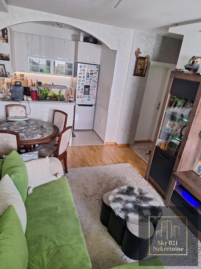 Dodatne pogodnosti: spušten plafon u stanu, dekorativna „sahara“ tehnika u hodniku i dnevnoj sobi, tenda na terasi, ugradni elementi u kuhinji, hodniku i kupatilu ostaju u stanu.