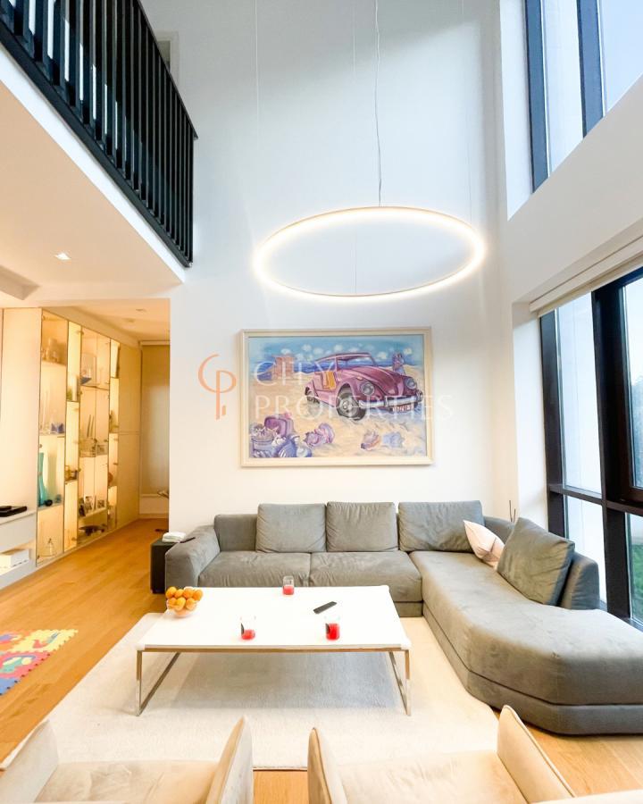Stan se izdvaja neobičnim arhitektonskim rješenjem, visokim plafonima i obiljem prirodne svjetlosti, što prostoru daje osjećaj prostranosti i topline. Prostrani dnevni boravak predstavlja centralni dio stana – idealan za uživanje i druženje.