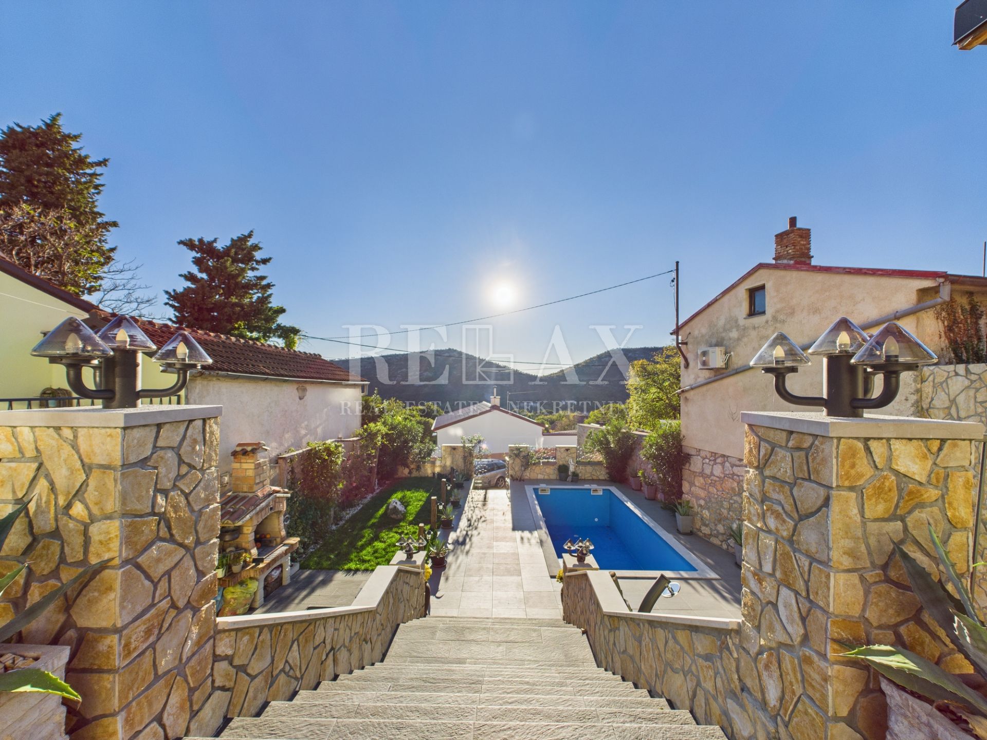 Opis: U mirnom dijelu Bribira, na samo 100 metara od centra mjesta, smještena je kuća s bazenom i tri apartmana, ukupne stambene površine 200 m², s uređenom okućnicom od 290 m². Ova nekretnina pruža idealnu priliku za investiciju u turistički najam, vikend odmor ili miran obiteljski život. Sastoji se od tri potpuno opremljena apartmana – dva jednosobna apartmana po 50 m² te jednog dvosobnog apartmana površine 60 m². Svaki apartman ima svoju kuhinju, dnevni boravak, spavaće sobe i kupaonicu, a raspored je osmišljen za udobnost i funkcionalnost.