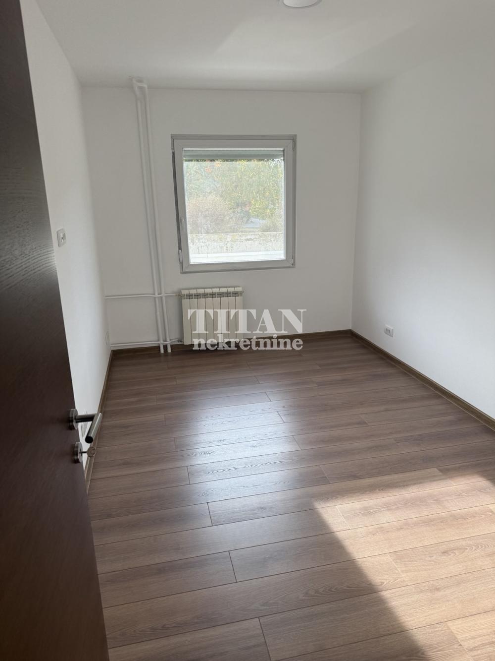 Ima dve odvojene spavaće sobe, dnevnu sobu, kupatilo i kuhinju i veliku lođu. Na visokom prizemlju ,ali na terenu ima visinu prvog sprata,visina je prvog sprata u urednoj zgradi, petospratnoj, sa liftom. Poseduje i podrumsku prostoriju. Ukupno ima 70m2, a uknjiženih 58m2 grejne površine.
