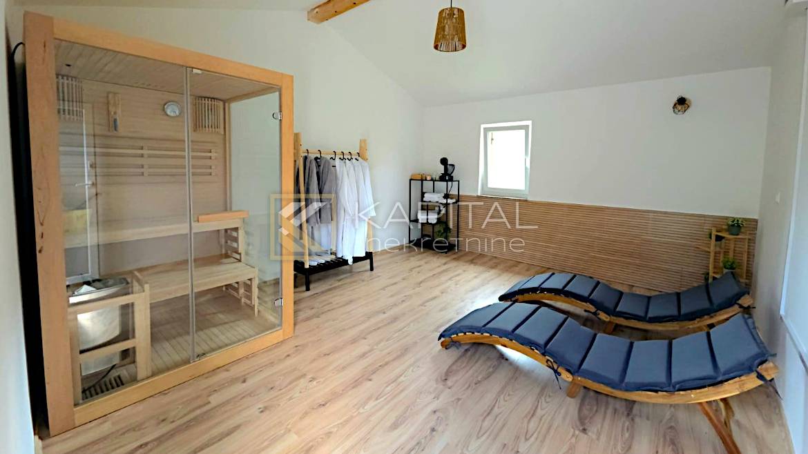 Opis: Prodaje se kuća s wellness zonom u Brseču, idealna za investiciju ili ugodan obiteljski život.