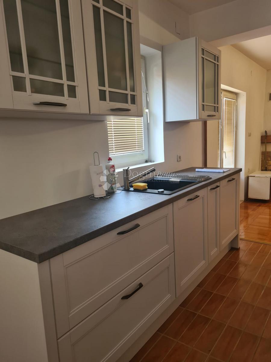 Novija kuća oduševljava modernom udobnošću i funkcionalnošću, a važno je naglasiti da još nitko u njoj nije stanovao. U prizemlju se nalazi hodnik iz kojeg se ulazi u prostrani 'open-space' dnevni boravak s novo opremljenom kuhinjom sa svim novim uređajima, dodatnu sobu i kupaonicu s tuš kadom i toaletom. Podrum nudi još jednu spavaću sobu, sobu za pranje i peglanje rublja tzv. vešeraj, spremište i veliku ljetnu kuhinju, iz koje se izlazi na natkrivenu terasu s kaminom, velikim stolom i 'lounge' kutkom, idealnu za obiteljska druženja. Stubište prekriveno hrastovim parketom, obasjano prirodnim svjetlom kroz ostakljeni zid, vodi do gornje etaže s četiri spavaće sobe, od kojih dvije imaju izlaz na balkon, te još jednom kupaonicom s toaletom.