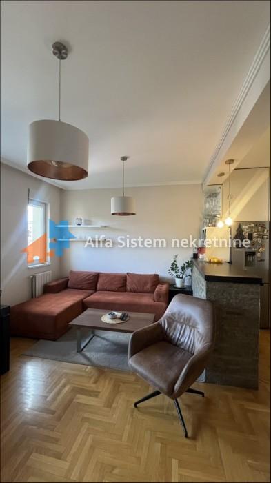 Opis: Moderno opremljen trosoban stan površine 52 m² izdaje se u blizini sportskog centra Olimp i Bulevara kralja Aleksandra. Stan se nalazi na 3. spratu novogradnje sa liftom i sastoji se od dnevne sobe sa kuhinjom i trpezarijom, dve spavaće sobe, kupatila i terase. Potpuno je opremljen novim nameštajem i tehnikom, uključujući novu kuhinju, bojler i mašinu za veš. Sveže okrečen i spreman za useljenje. Grejanje je etažno na struju, što omogućava ekonomično održavanje. Stan poseduje video nadzor, sigurnosna vrata i spoljno parking mesto. U neposrednoj blizini nalaze se vrtić, škola, Cvetkova pijaca, Dom zdravlja Zvezdara i SC Olimp.