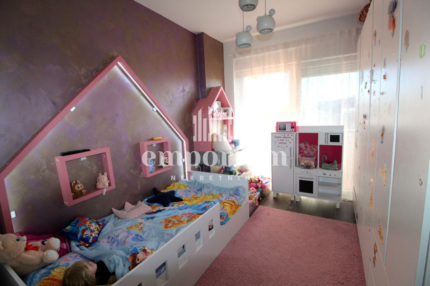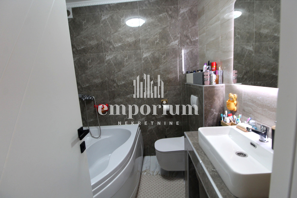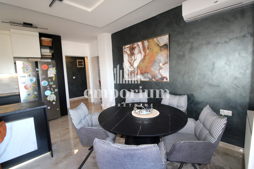 Stan je opremljen:PVC stolarijom sa roletnama, Centralnim podnim grijanjem, Tri klima uređaja, Najkvalitetnijim sanitarijama, Novim elektro i vodovodnim instalacijama, Posebnim termo i zvučnim izolacijama.