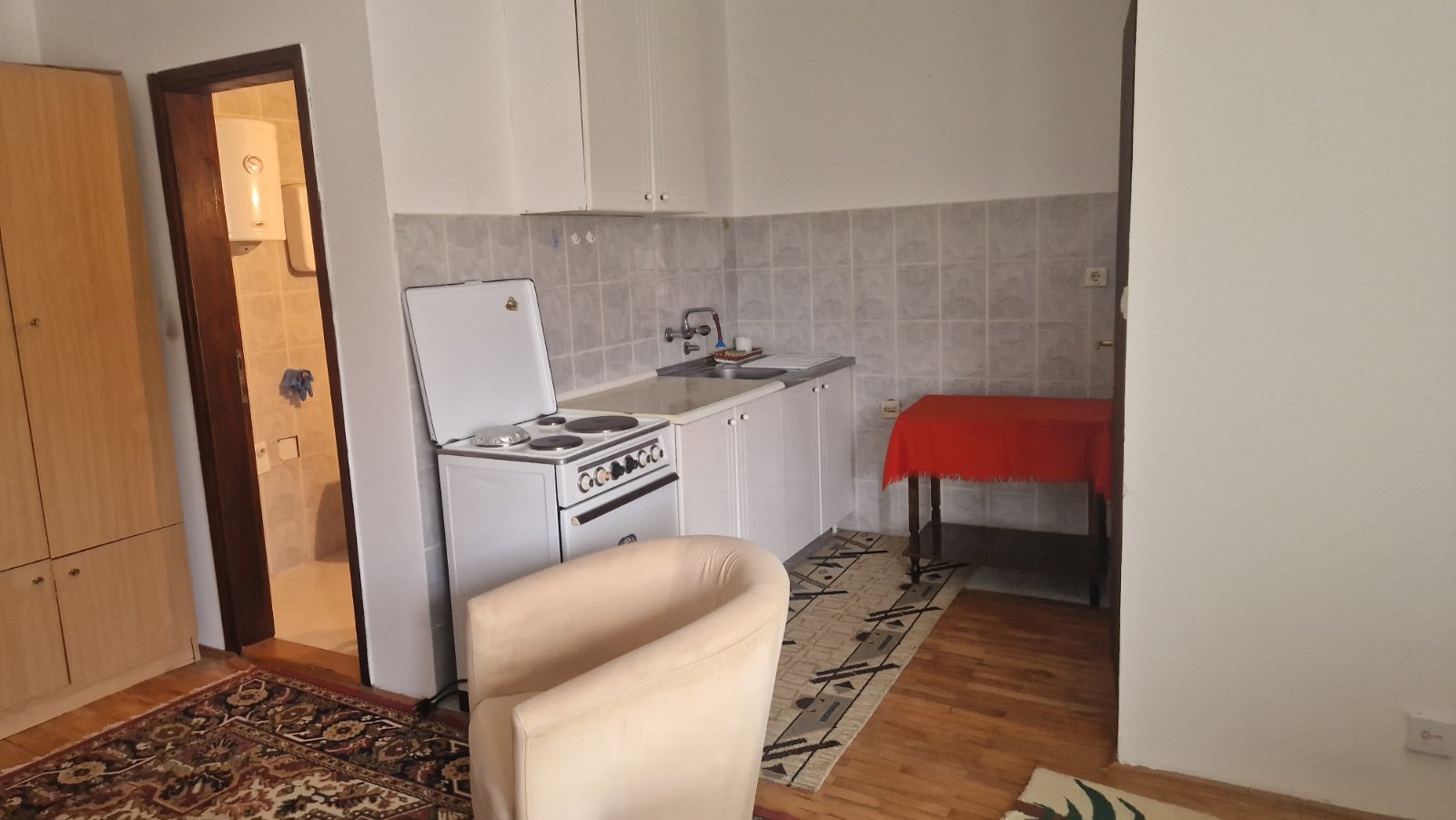 Sastoji se od kuhinje u sklopu dnevne sobe , manjom ostavom , kupatilom i terasom.