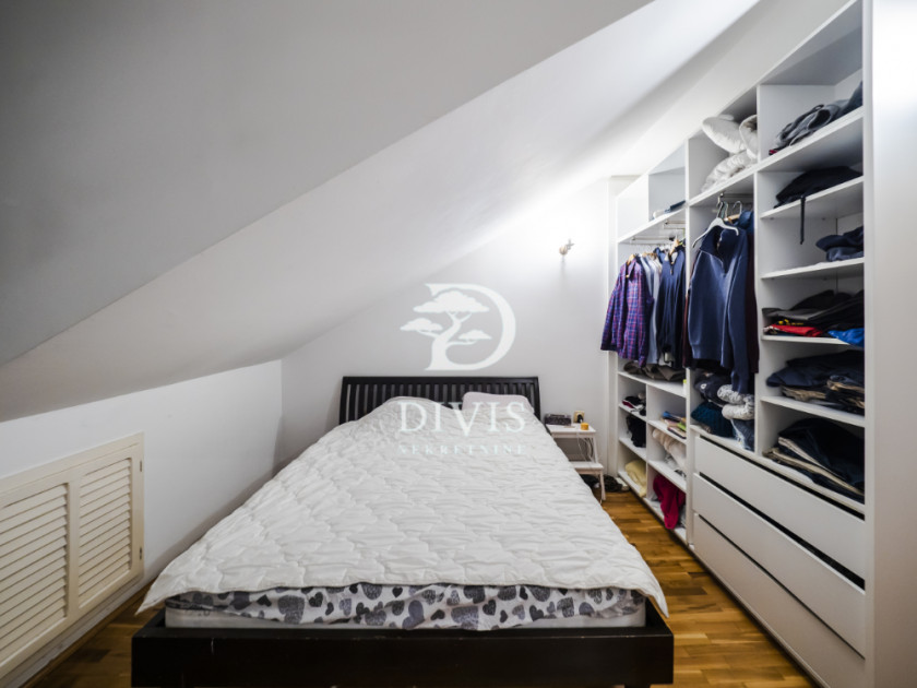 Na donjoj etaži smešteni su hodnik, toalet, kuhinja, prostrana trpezarija i dnevni boravak iz kog se izlazi na terasu orijentisanu ka Mileševskoj ulici, sa otvorenim pogledom na grad.Gornji nivo obuhvata centralni hodnik sa ugradnim plakarima, tri komforne spavaće sobe i kupatilo. Na ovom nivou nalazi se i velika terasa orijentisana ka mirnom unutrašnjem dvorištu, sa panoramskim pogledom iznad okolnih zgrada.