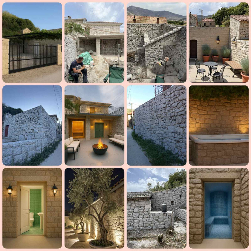 Upotrebna površina kuće iznosiće nakon renoviranja cca 200 metara kvadratnih. Kuća ima duple kamene zidove širine 80 centimetara.