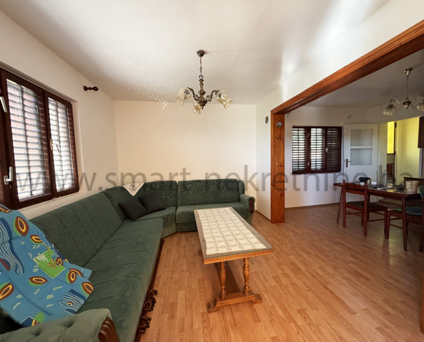 Na prvom spratu je smještena stambena jedinica koja se sastoji od dnevnog boravka su kuhinjom i trpezarijom, tri sobe, kupatila hodnika i ulazne terase.