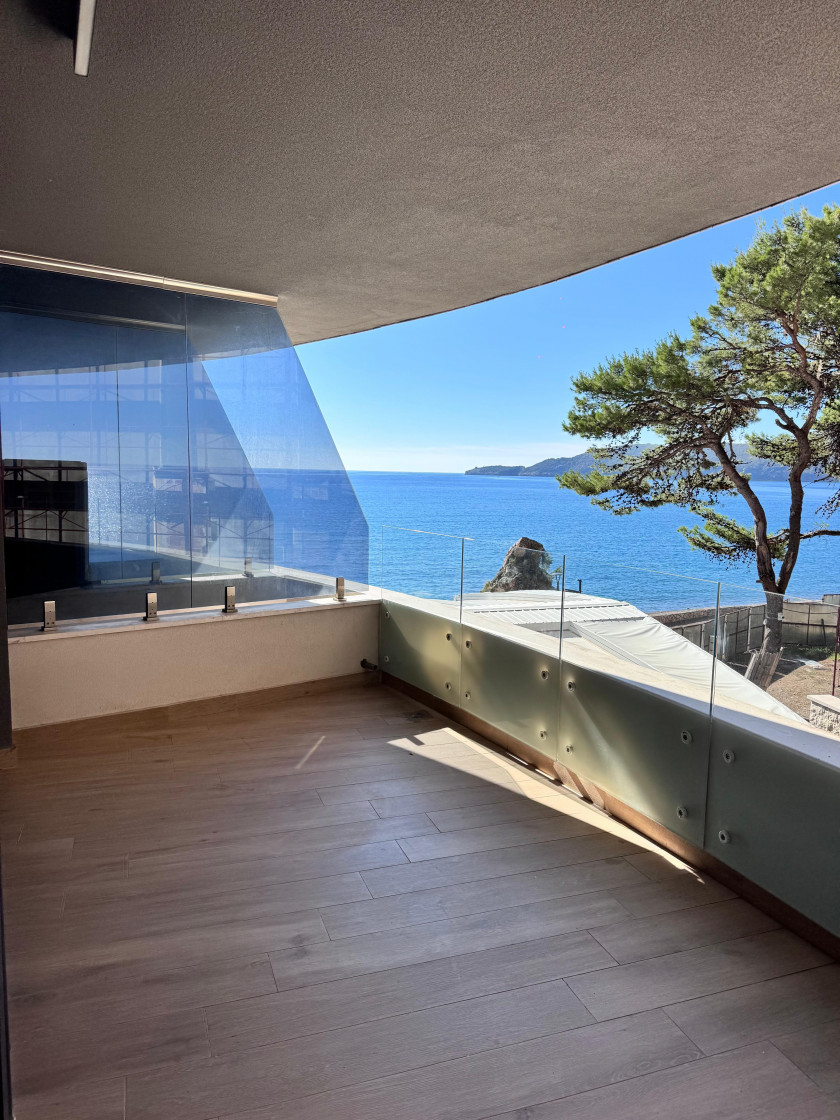 Na prodaju je moderan i potpuno opremljen stan površine 59 m², smješten na prvoj liniji mora u prestižnom dijelu Rafailovića.