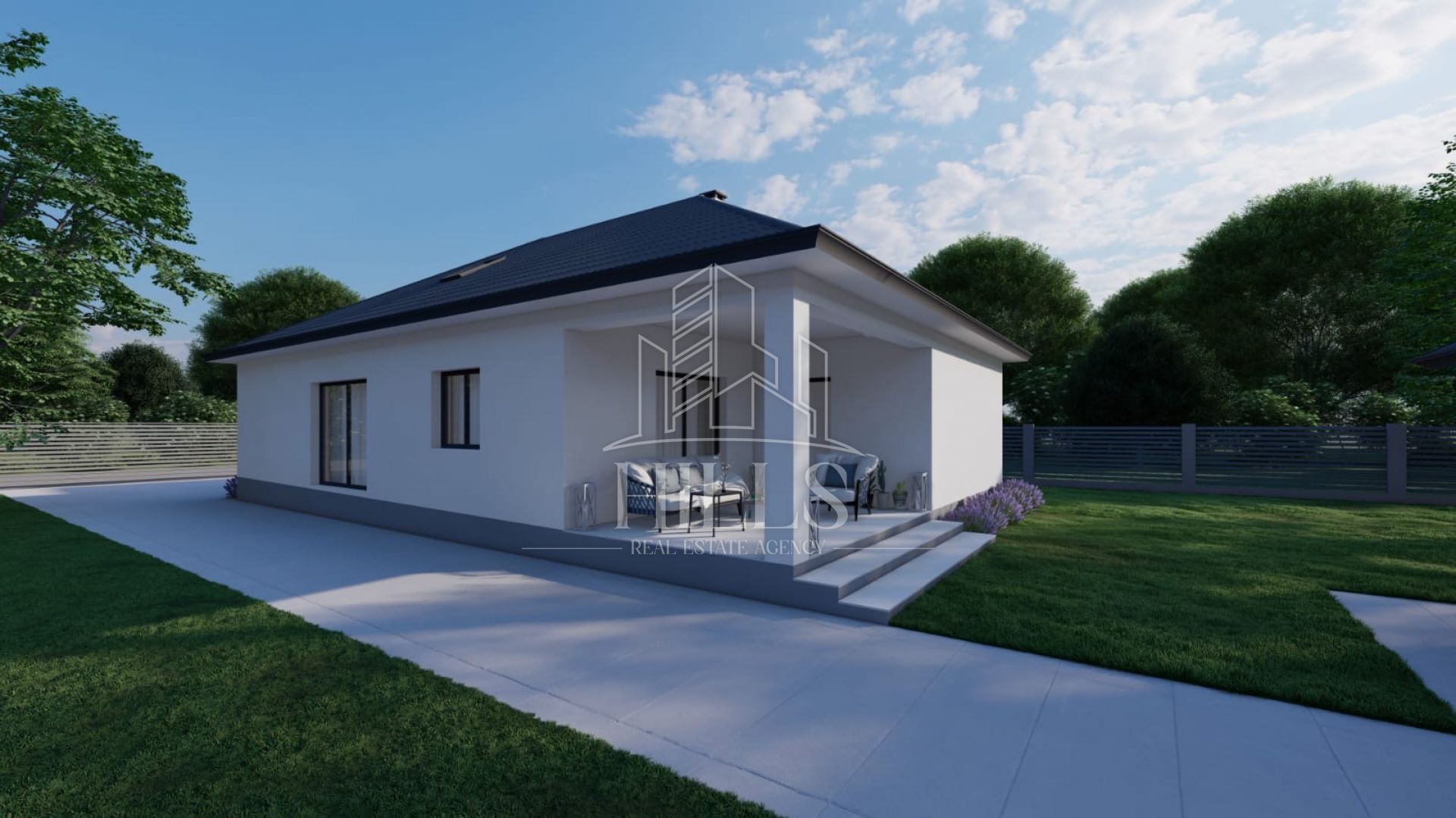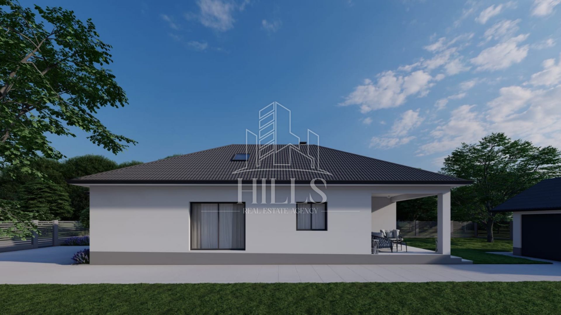 Prizemlje: ulazni hall, dnevni boravak, tri spavaće sobe, kuhinja s blagovaonicom, kupaonica s wc-om, ostava i terasa.