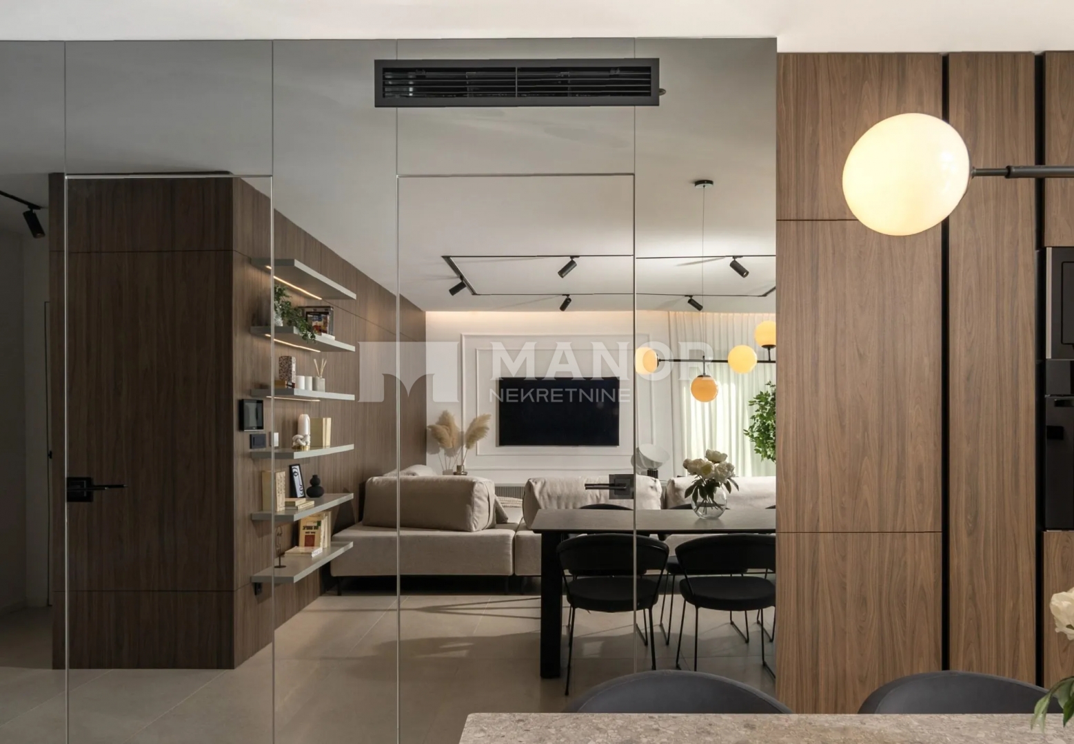 Opis: Manor predstavlja prostrani i moderno uređen 3-sobni stan s bazenom i dva parkirna mjesta. Stan se prostire na ukupnoj površini od 134,51 m² i smješten je u mirnom dijelu Kostrene.