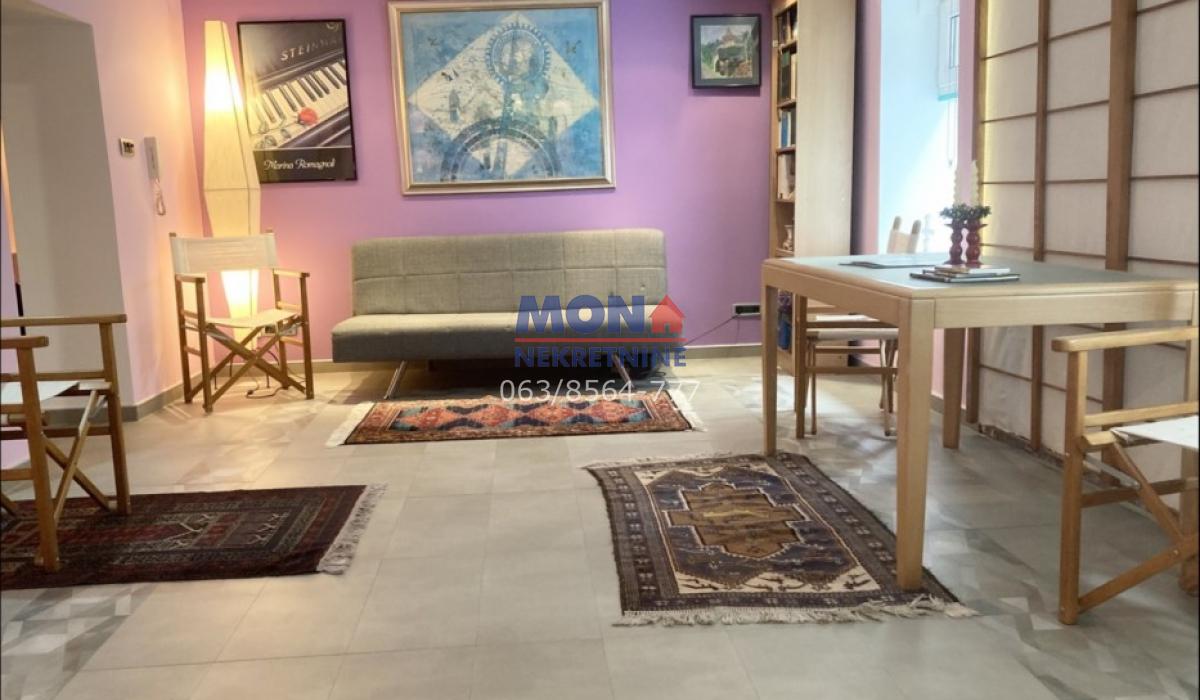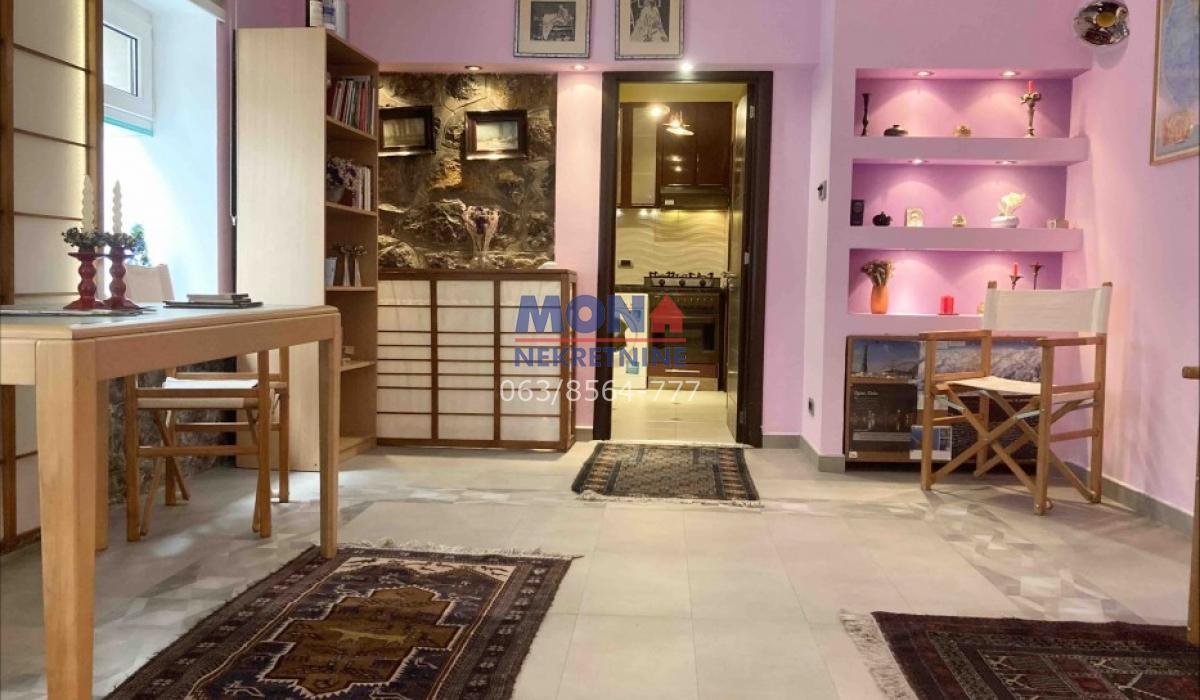 Struktura: antre, velika dnevna soba, spavaća soba, kupatilo, zasebna kuhinja, ostava. Centralno grejanje. Zaseban ulaz.