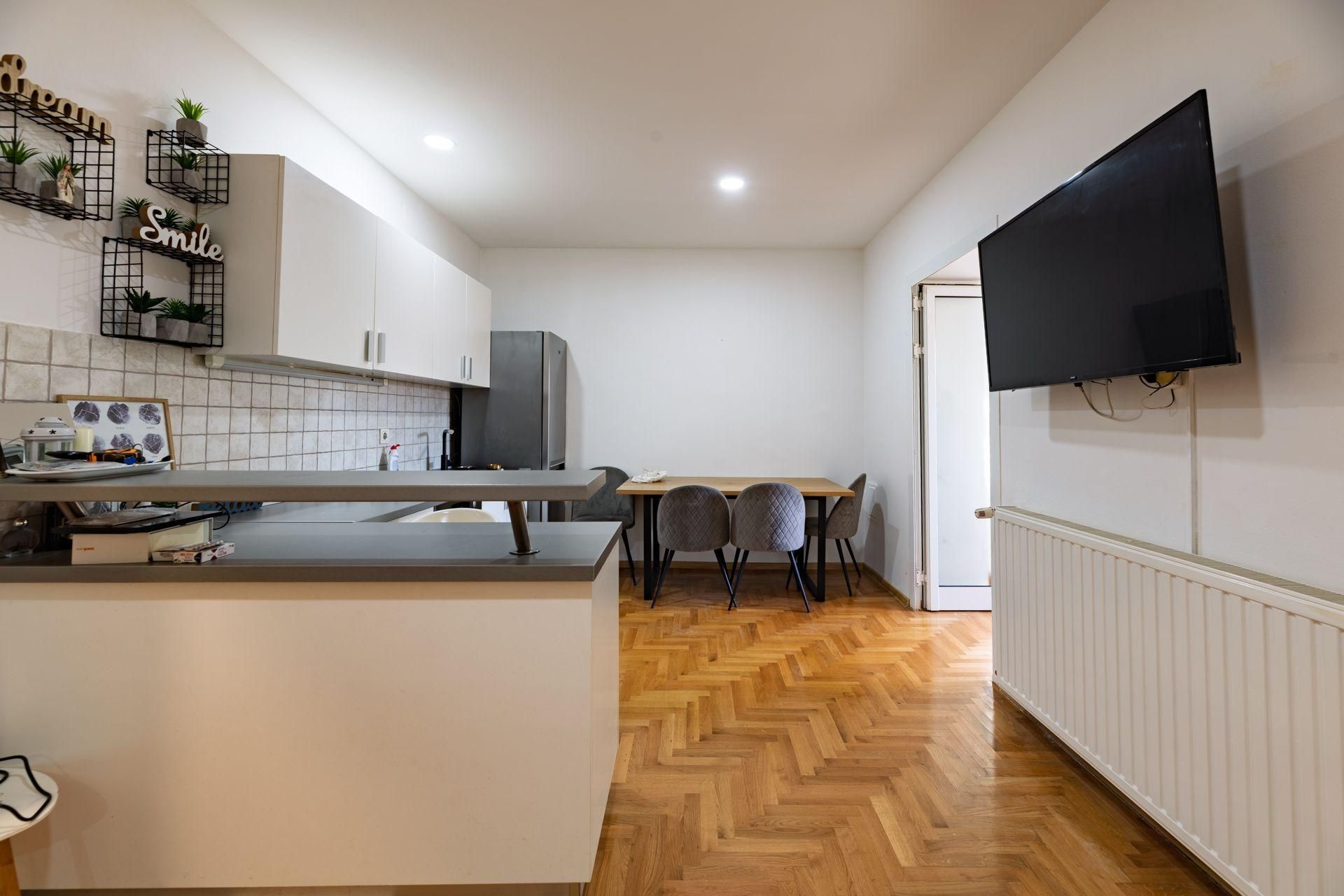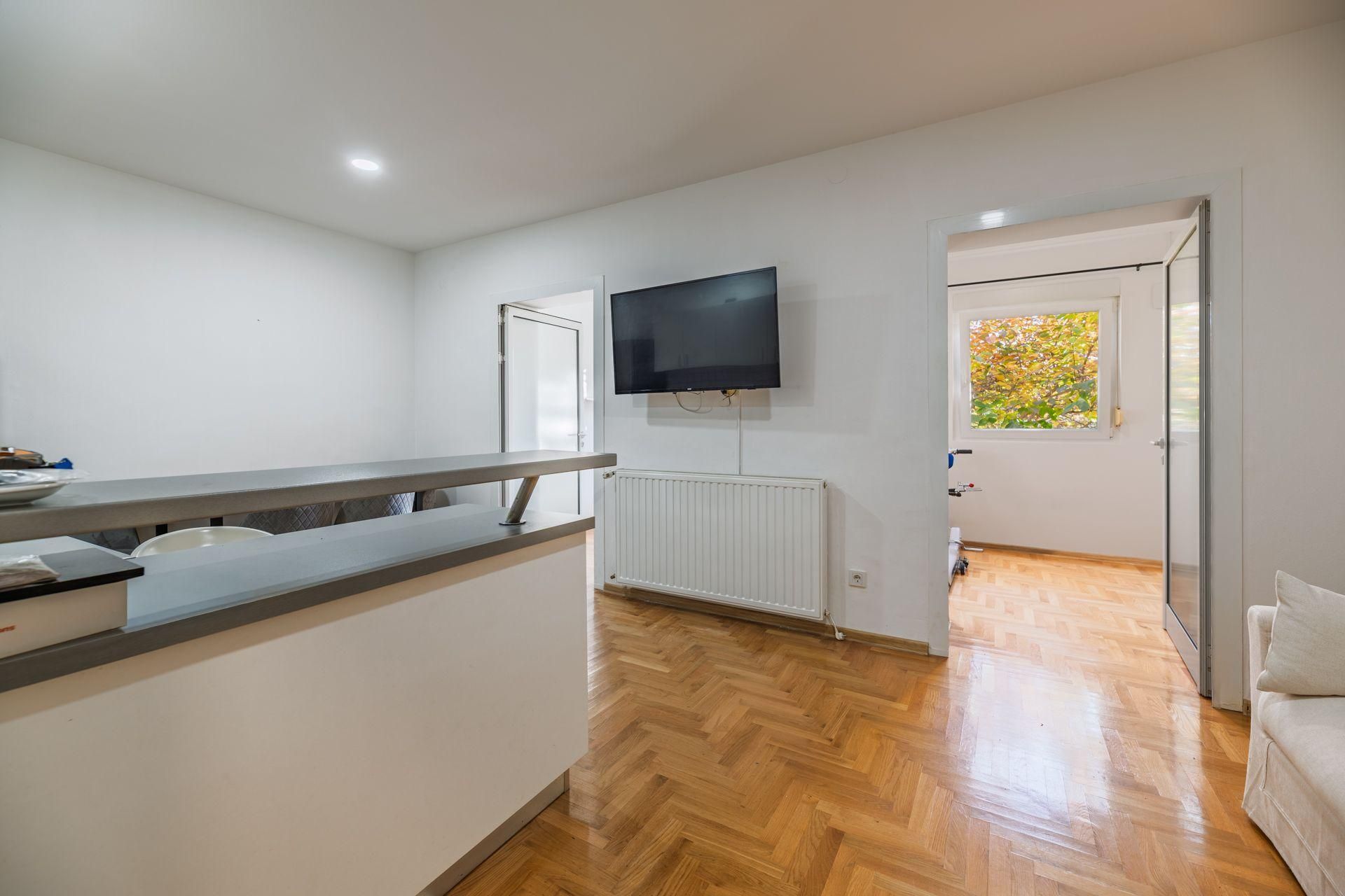 Stan je kompletno adaptiran i uređen 2021.g. Nalazi se u mirnom okruženju zajedničkog vrta, te se iz stana pruža pogled na zelenilo.