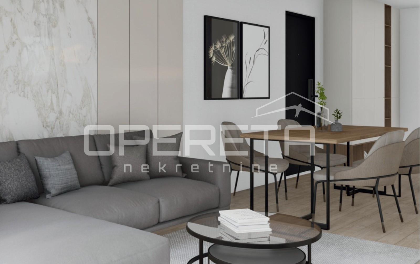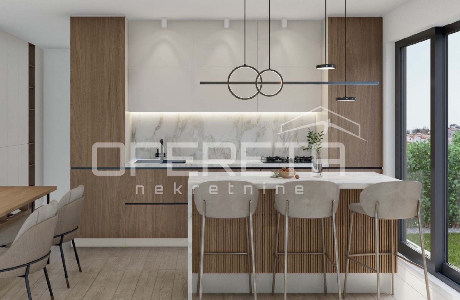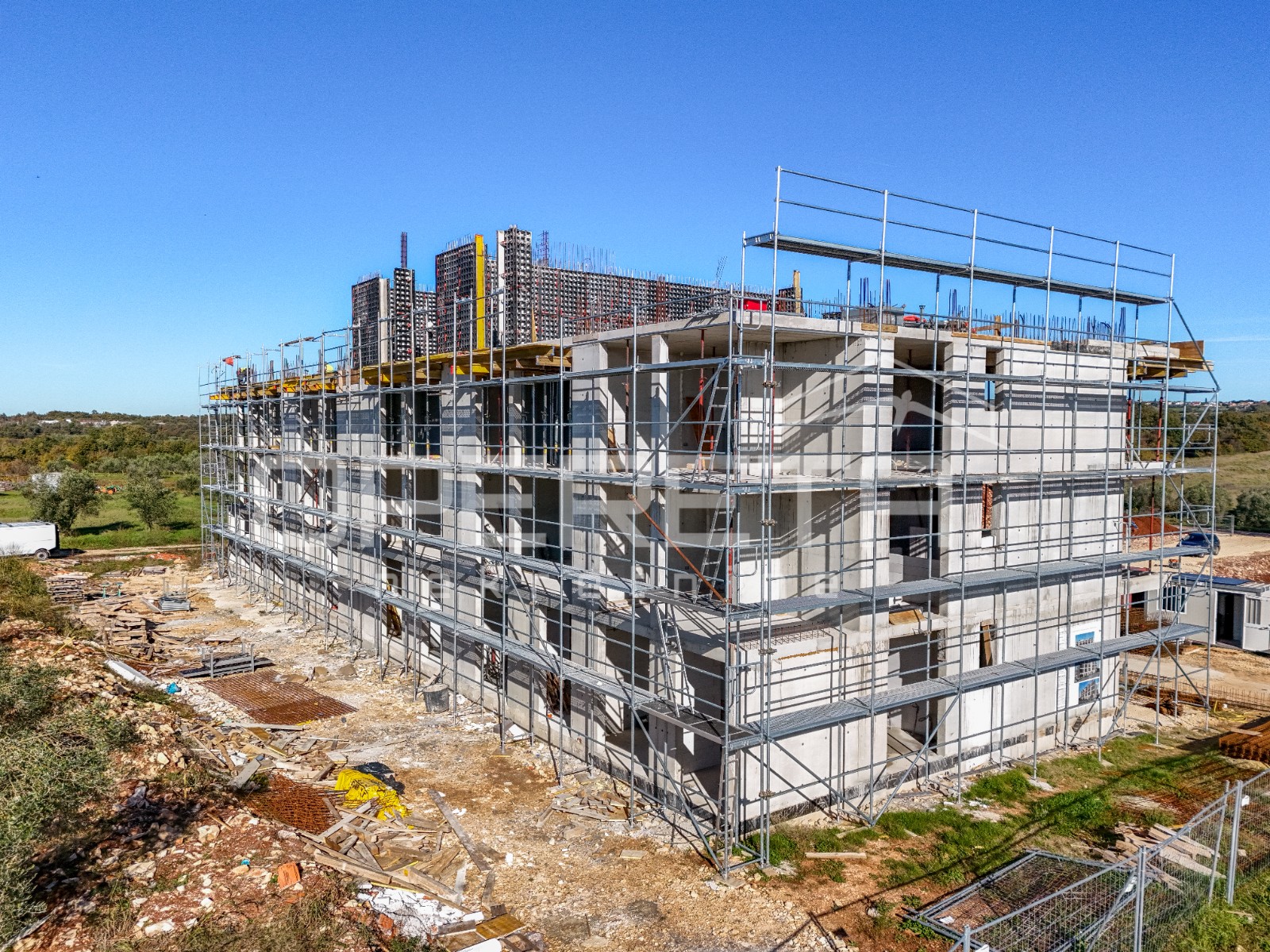 Opis: Istra, Tar – moderan stan u novogradnji s liftomIz ponude izdvajamo stan koji se nalazi u mirnom dijelu Tara, u novogradnji suvremenih apartmana visoke kvalitete.Stan se nalazi na prvom katu stambene zgrade te obuhvaća ulazni hodnik, open space prostor s kuhinjom, blagovaonicom i dnevnim boravkom koji ima izlaz na loggiu. U stanu se nalaze dvije spavaće sobe, od kojih jedna ima vlastiti izlaz na balkon, moderna kupaonica te dva parkirna mjesta koja su uključena u cijenu.Oprema stana uključuje podno grijanje u cijelom prostoru, klima uređaj, keramiku vrhunske talijanske kvalitete te sanitarije marke Villeroy & Boch.Stan se prodaje po principu „ključ u ruke“, bez namještaja. Priložene fotografije su informativnog karaktera.U cijenu je uključen PDV.Planirani završetak gradnje predviđen je za 2026. godinu.
