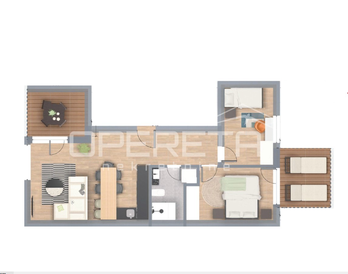 Opis: Istra, Tar – moderan stan u novogradnji, drugi katIz ponude izdvajamo stan koji se nalazi u mirnom dijelu Tara, u novogradnji suvremenih apartmana visoke kvalitete.Stan se nalazi na drugom katu stambene zgrade te obuhvaća ulazni hodnik, open space prostor s kuhinjom, blagovaonicom i dnevnim boravkom koji ima izlaz na loggiu. U stanu se nalaze dvije spavaće sobe, od kojih jedna ima vlastiti izlaz na balkon, moderna kupaonica te dva parkirna mjesta koja su uključena u cijenu.Oprema stana uključuje podno grijanje u cijelom prostoru, klima uređaj, keramiku vrhunske talijanske kvalitete te sanitarije marke Villeroy & Boch.Stan se prodaje po principu „ključ u ruke“, bez namještaja. Priložene fotografije su informativnog karaktera.U cijenu je uključen PDV.Planirani završetak gradnje predviđen je za 2026. godinu.