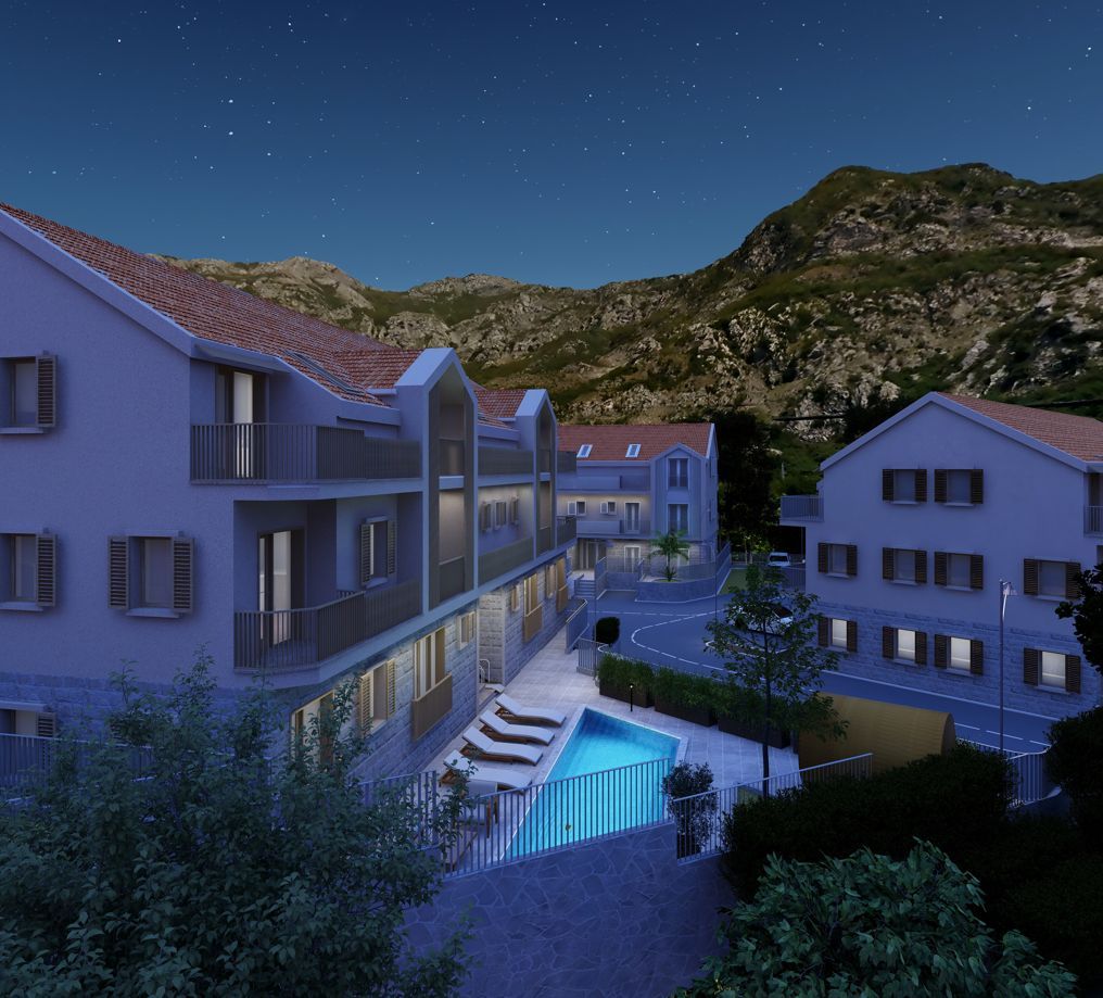 Živopisna obala Bokokotorskog zaliva, uz blizinu arheoloških atrakcija, čini ovaj kompleks idealnim izborom za život.