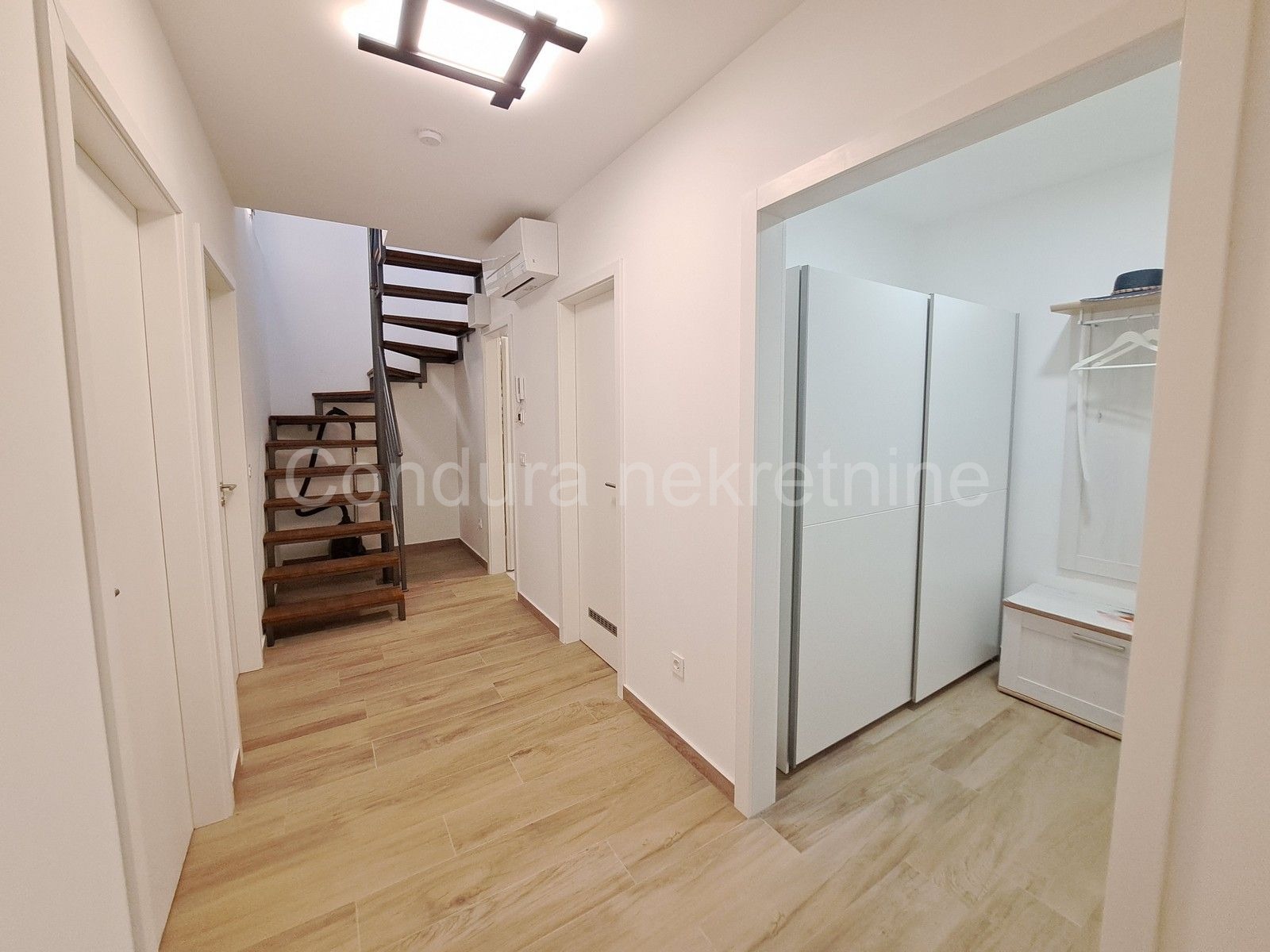 Opis: ZADAR (Plovanija) - prodaje se dvoetažni namješten stan u novoj stambenoj zgradi s liftom na 5. i 6. katu, s krovnom terasom.