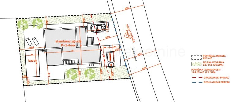 Opis: Prodaje se građevinsko zemljište (453 m2) sa građevinskom dozvolom u mjestu Poljica Brig, nedaleko Nina te Zadra.