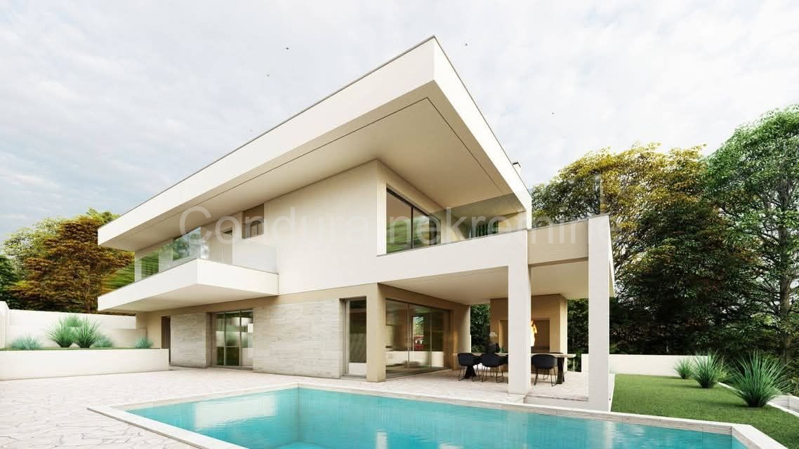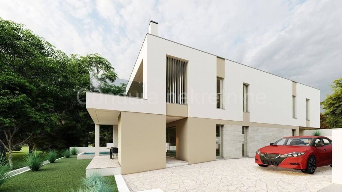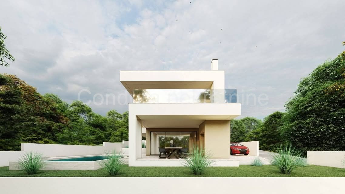 Opis: OTOK PAŠMAN (Ždrelac) - na prodaju je građevinsko zemljište površine 505 m2 s projektom i građevinskom dozvolom za izgradnju luksuzne, moderne kuće s bazenom.