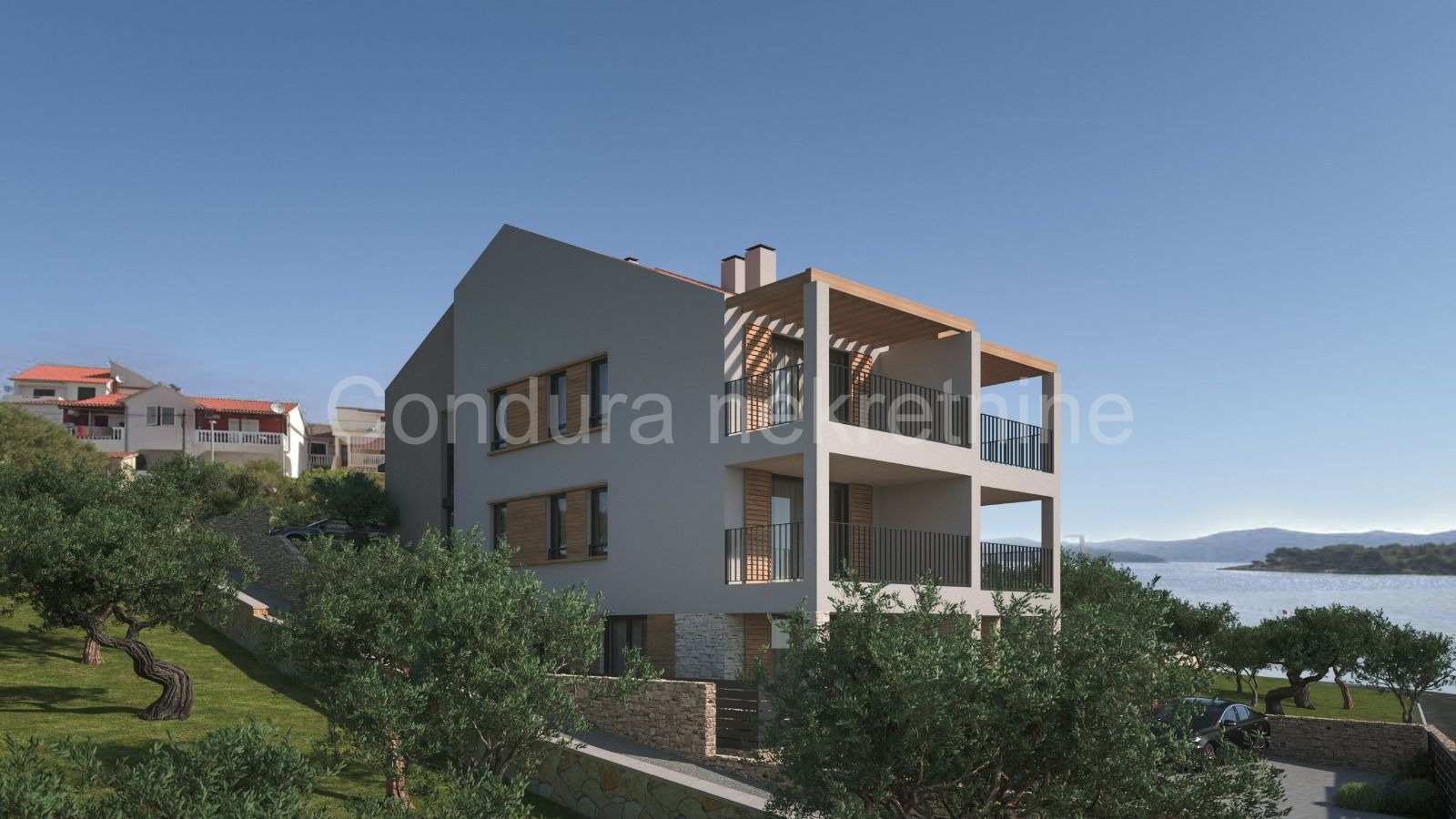 Opis: Na prodaju su luksuzni apartmani smješteni na drugom katu moderne zgrade u prvom redu do mora, s galerijom i vrhunskom opremom. Zgrada je udaljena samo 500 metara od centra mjesta, a apartmani su savršeni za one koji traže luksuzan životni prostor uz more.