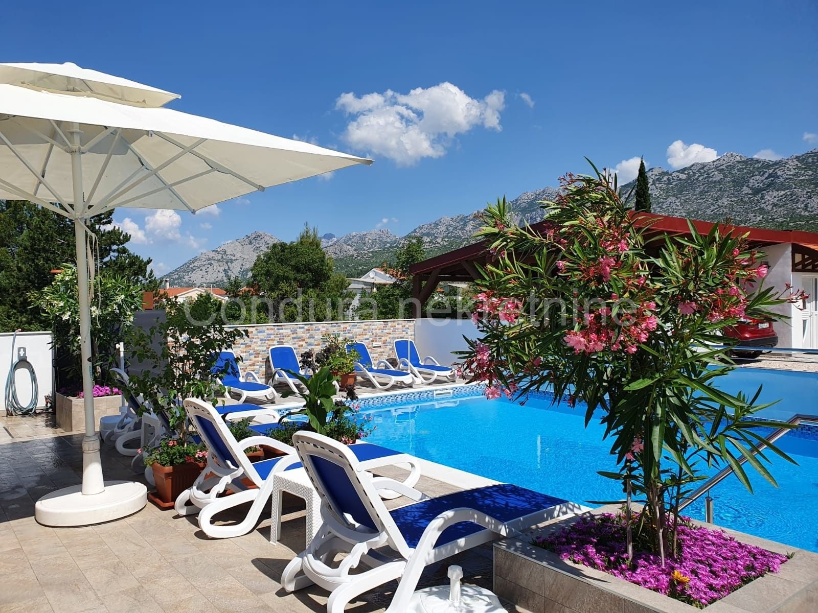 Opis: SELINE (STARIGRAD) - na prodaju je prelijepa potpuno namještena samostojeća kuća sa šest apartmana i bazenom, smještena na obroncima Nacionalnog parka Paklenica, izgrađena na parceli od 635 m2, s pogledom na more te kanjon Male Paklenice.