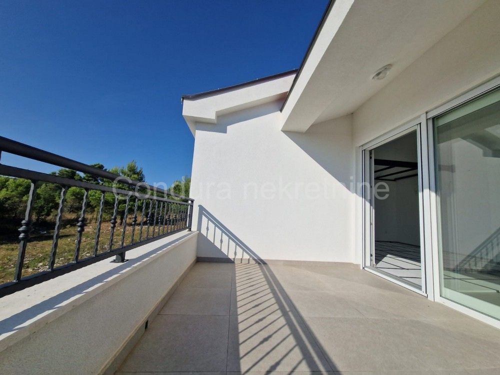 Sastoji se od dnevnog boravka sa blagovaonicom i kuhinjom, dvije spavaće sobe, kupaonice, predsoblja, terase s pogledom na more i privatnog dvorišta sa terasom, vrtom, solarnim tušem i prilazom sa dva parkirna mjesta.