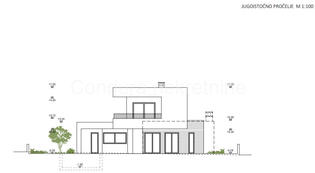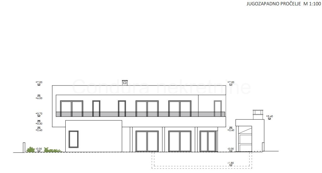Uz ovo zemljište nalazi se još jedno zemljište površine 624 m2 s pravomoćnom građevinskom dozvolom i projektnom dokumentacijom za izgradnju vile s bazenom: