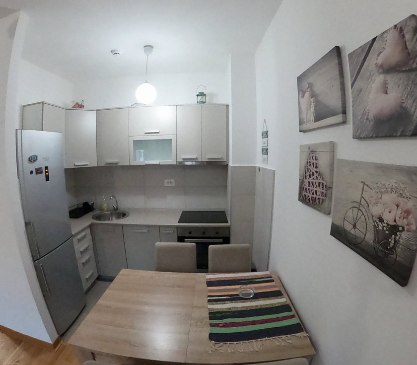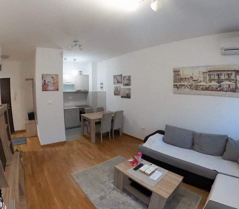 Opis: Izdaje se veoma lijepo namjesten jednosoban stan od 43m2 u City keju, na Zagoriču. Stan je na osmom spratu u srednjoj zgradi sa dva funkcionalna lifta. Ulazi su veoma dobro održavani, a zgrada posjeduje interfon. Stan ima manju opremljenu terasu sa ostavom, a koja ima pogled na brdo Gorica. Kuhinja je kompletno opremljena (ugradna mašina za pranje suđa, ugradni šporet i rerna sa aspiratorom, kao i veliki frizider). Stan je veoma ususkan i topao, a ujedno i veoma osvjetljen. Lokacija je odlicna, u blizini su marketi, lokali, pumpa, apoteke, škole.... Cijena mjesečne zakupnine - po dogovoru. Obavezan je depozit. Za vise informacija mozete pozvati na broj 069-487-570!