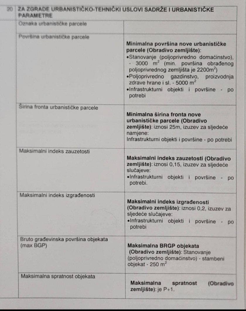 Prema UT uslovima mogućnost izgradnje kuće od 250 m2,spratnost P+1.