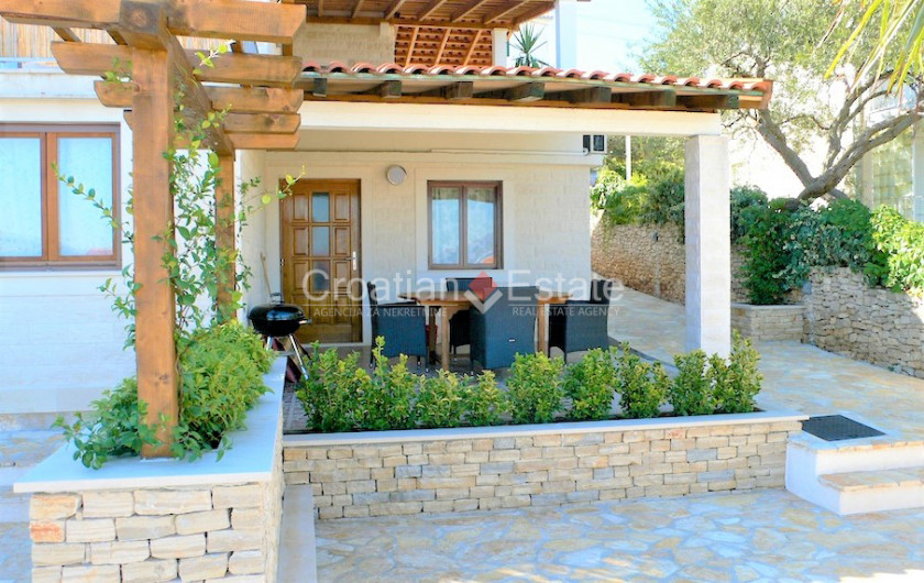 Opis: Prodajemo kuću s panoramskim pogledom na more, smještenu na Braču, u mirnom dijelu, oko 250m od mora i plaže i 300m od luke i restorana. Kuća ima tri stana, od kojih svaki ima zaseban ulaz i parkirno mjesto, zbog čega je idelna za veću obitelj, posao iznajmljivanja i za sve koji traže nekretninu za kombinaciju navedenog posla i doma.