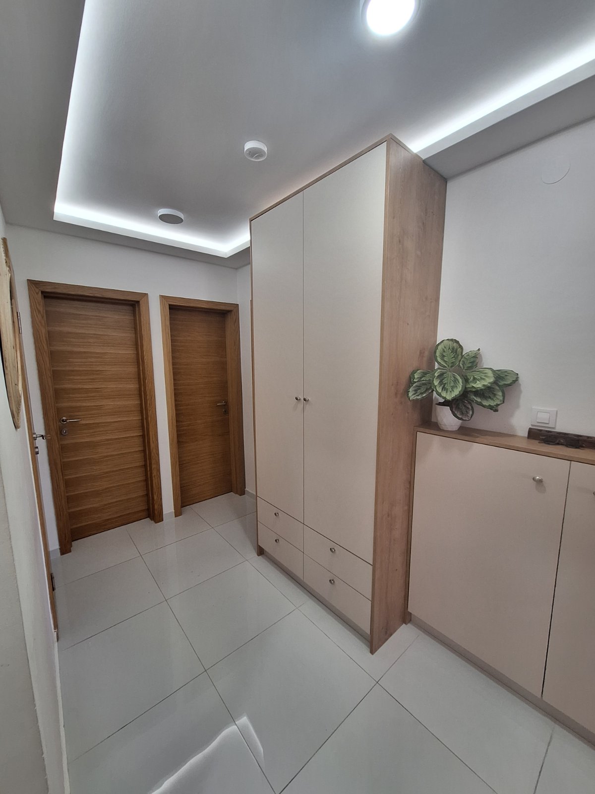 Opis: Trosoban namjesten stan povrsine 89 m2.Struktura stana dnevni boravak kuhinja i trpezarija, 3spavace sobe, hodnik, kupatilo,terasa 10m2.Stan je na drugom spratu zgrada ima lift.Parking javan.