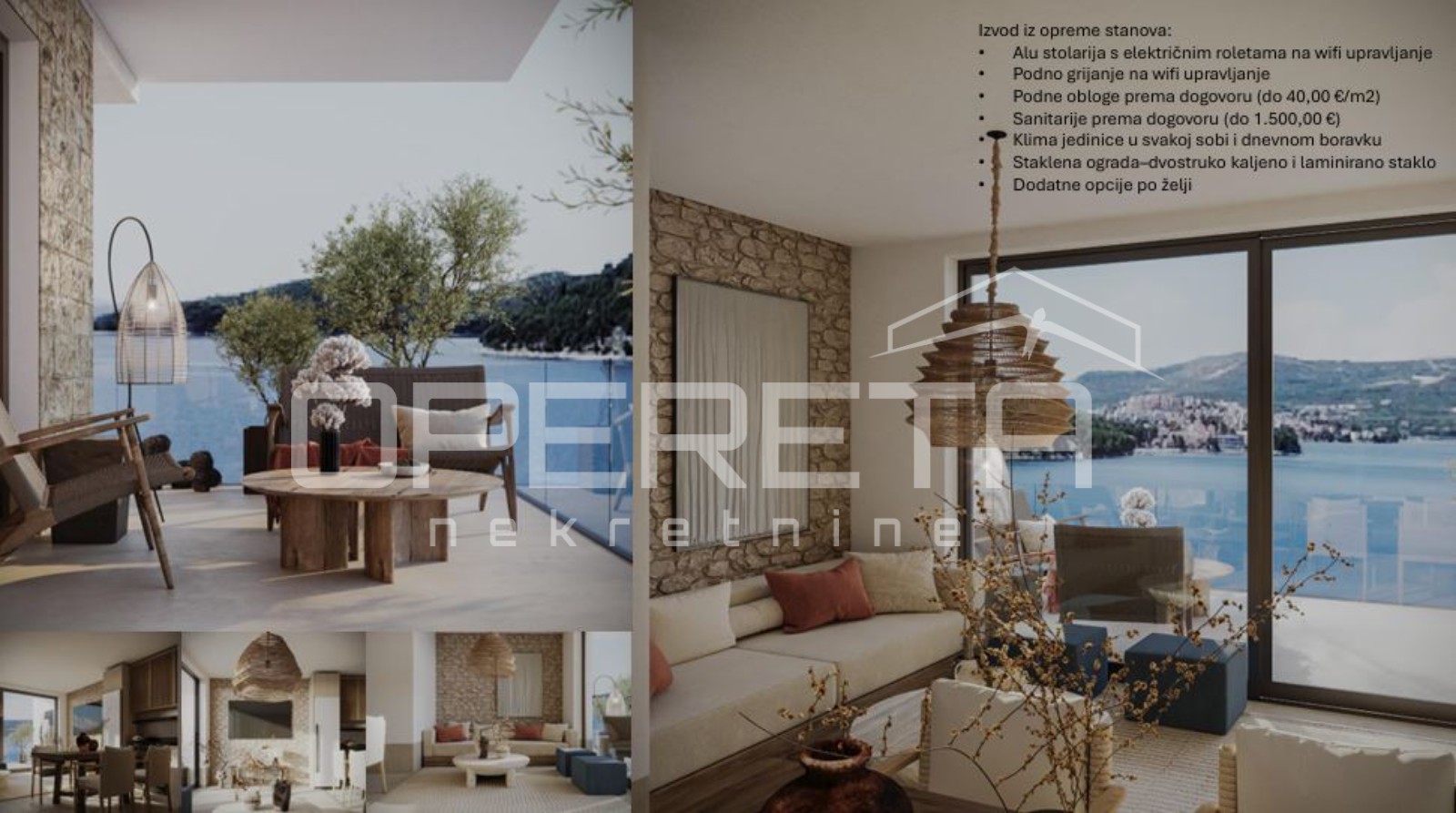 Opis: Novogradnja u Ražnju kraj Rogoznice – stan s balkonom i pogledom na more, 70 m od plažeU mirnom priobalnom naselju Ražanj kraj Rogoznice, svega 70 metara od mora, gradi se suvremeni stambeni projekt s 12 stanova i pripadajućim parkirnim i garažnim mjestima. Projekt je pozicioniran na povišenoj lokaciji s otvorenim pogledom na rogoznički arhipelag i more.Stan u prizemlju, orijentiran prema sjeveru, obuhvaća ukupnu neto površinu od 50,57 m2 (s koeficijentima) i sastoji se od dnevnog boravka s kuhinjom i blagovaonicom, spavaće sobe, hodnika, toaleta te prostranog balkona.U opremi su predviđene keramičke pločice 1. klase i sanitarije po izboru kupca, klima uređaji u dnevnom boravku i spavaćoj sobi s upravljanjem putem wifi sustava, podno grijanje s istim načinom upravljanja, aluminijska stolarija s električnim roletama u dnevnom boravku, spavaćoj sobi i kupaonici, te dvostruko kaljeno i laminirano staklo na balkonskoj ogradi. Ugrađuju se protuprovalna vrata, a brojila za vodu i struju su zasebna....